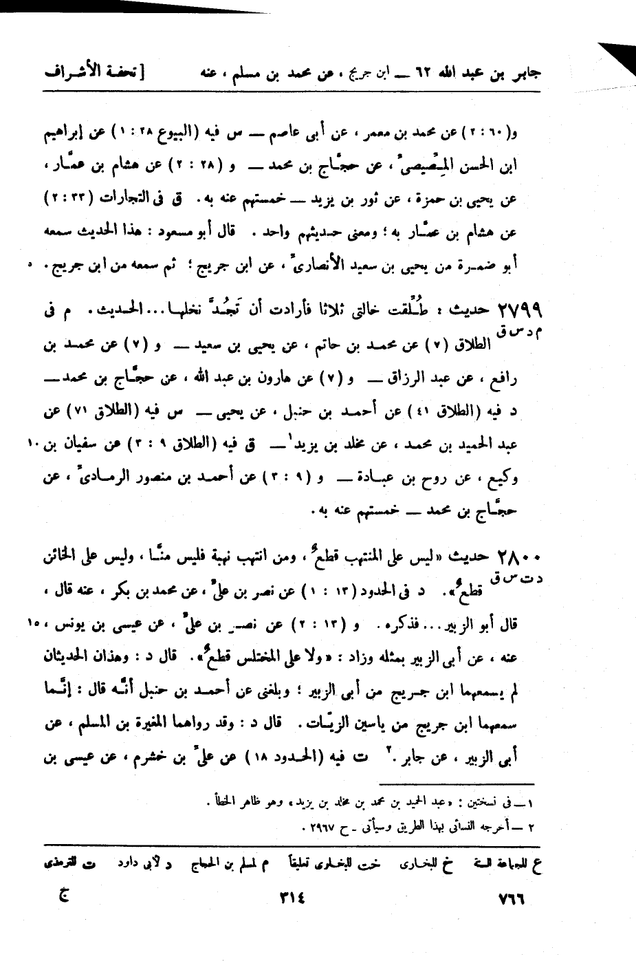 د في الحدود (13: 1) عن نصر بن عليَ، عن محمد بن بكر، عنه قال قال أبو الزبير ... فذكره. و (13: 2) عن نصربن عليَ، عن عيسى بن يونس عنه، عن أبي الزبير بمثله وزاد: ولا على المختلس قطعٌ. قال