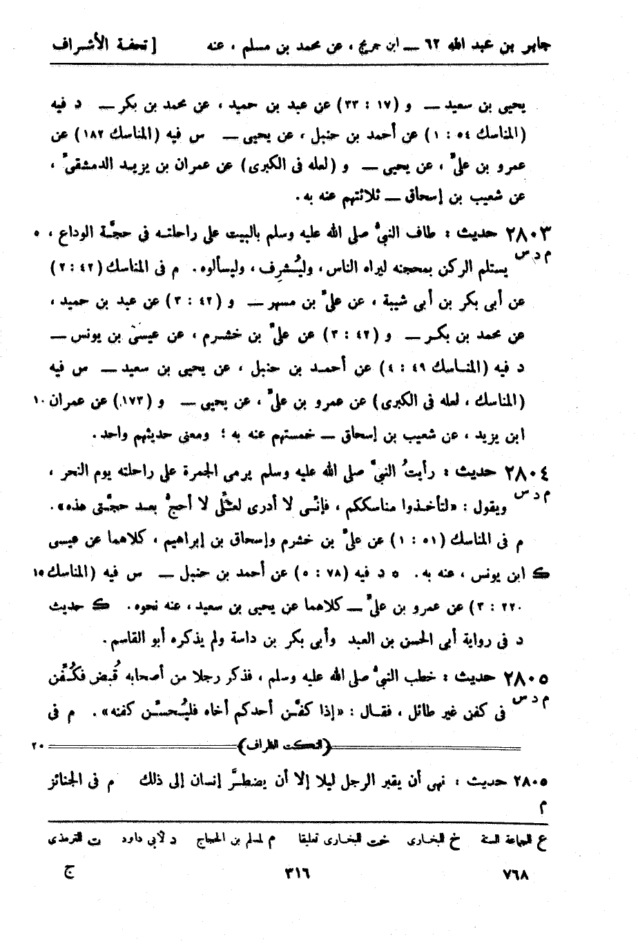 م في المناسك (42: 2) عن أبي بكر بن أبي شيبة، عن عليِّ بن مسهر - و (42: 3) عن عبد بن حميد، عن محمد بن بكر - و (42: 3) عن عليِّ بن خشرم، عن عيسى بن يونس -