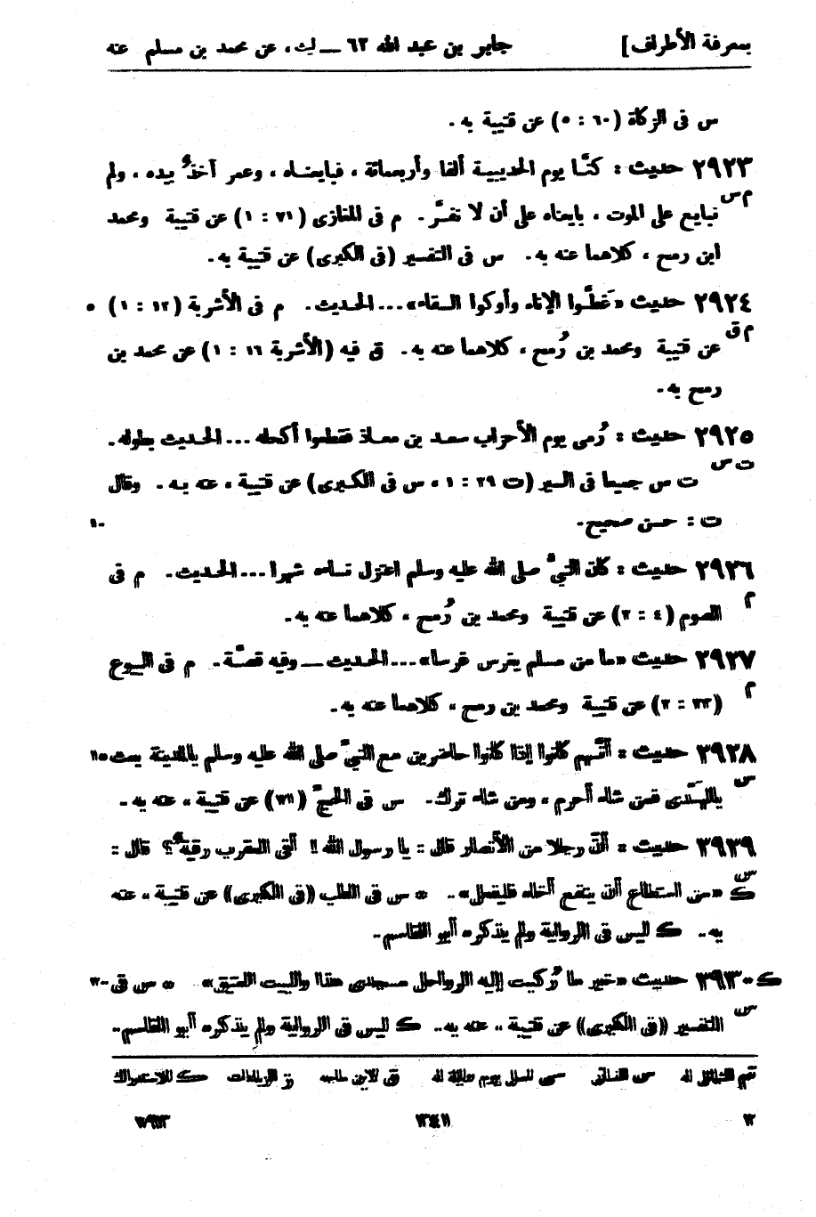 2925 -[ت س] حديث: رمى يوم الأحزاب سعد بن معاذ فقطعوا أكحله ... الحديث بطوله. (ت س) جميعاً في السير (ت 29: 1، س في الكبرى) عن قتيبة، عنه به. وقال
