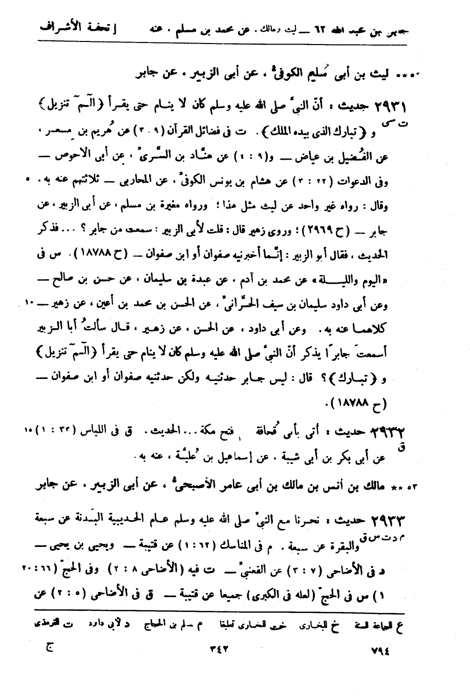 مالك بن أنس بن مالك بن أبي عامر الأصبحيُّ، عن أبي الزبير، عن جابر