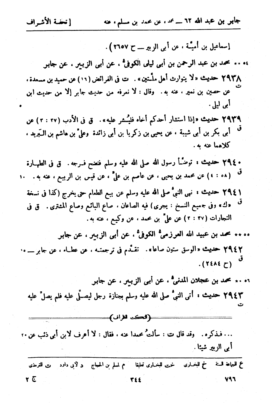 2938 - حديث: لا يتوارث أهل ملَّتين. (ت) في الفرائض (16) عن حميد بن مسعدة، عن حصين بن نمير، عنه به. وقال: (لا نعرفه من حديث جابر إلا من حديث ابن أبي ليلى.