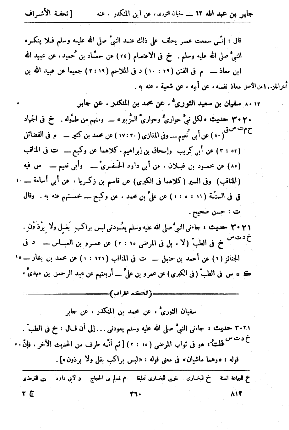 ت في المناقب (126: 1) عن محمد بن بشار (ك) س في الطبّ (في الكبرى) عن عمرو بن عليَ - أربعتهم عن عبد الرحمن بن مهديَ، -[361]- عنه به. وقال
