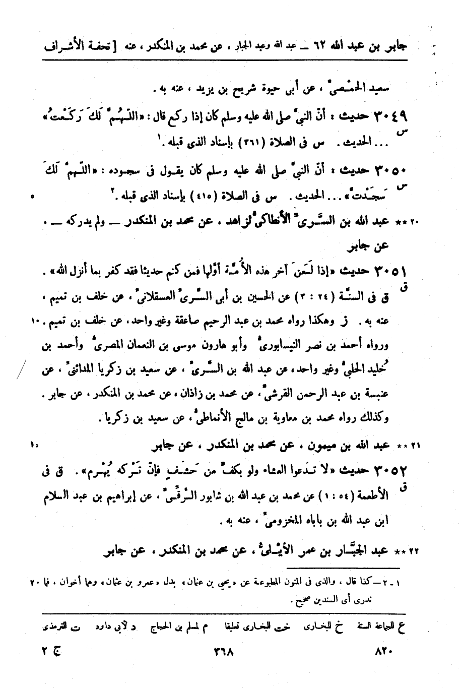 ق في السنَّة (24: 3) عن الحسين بن أبي السَّريِّ العسقلانيِّ، عن خلف بن تميم، عنه به. (ز) وهكذا رواه محمد بن عبد الرحيم صاعقة وغير واحد، عن خلف بن تميم ورواه أحمد بن نصر النيسابوريُّ وأبو هارون موسى بن النعمان المصريُّ وأحمد بن خُليد الحلبيُّ وغير واحد، عن عبد الله بن السَّريِّ، عن سعيد بن زكريا المدائنيِّ، عن عنبسة بن عبد الرحمن القرشيِّ، عن محمد بن زاذان، عن محمد بن المنكدر، عن جابر وكذلك رواه محمد بن معاوية بن مالج الأنماطيُّ، عن سعيد بن زكريا.