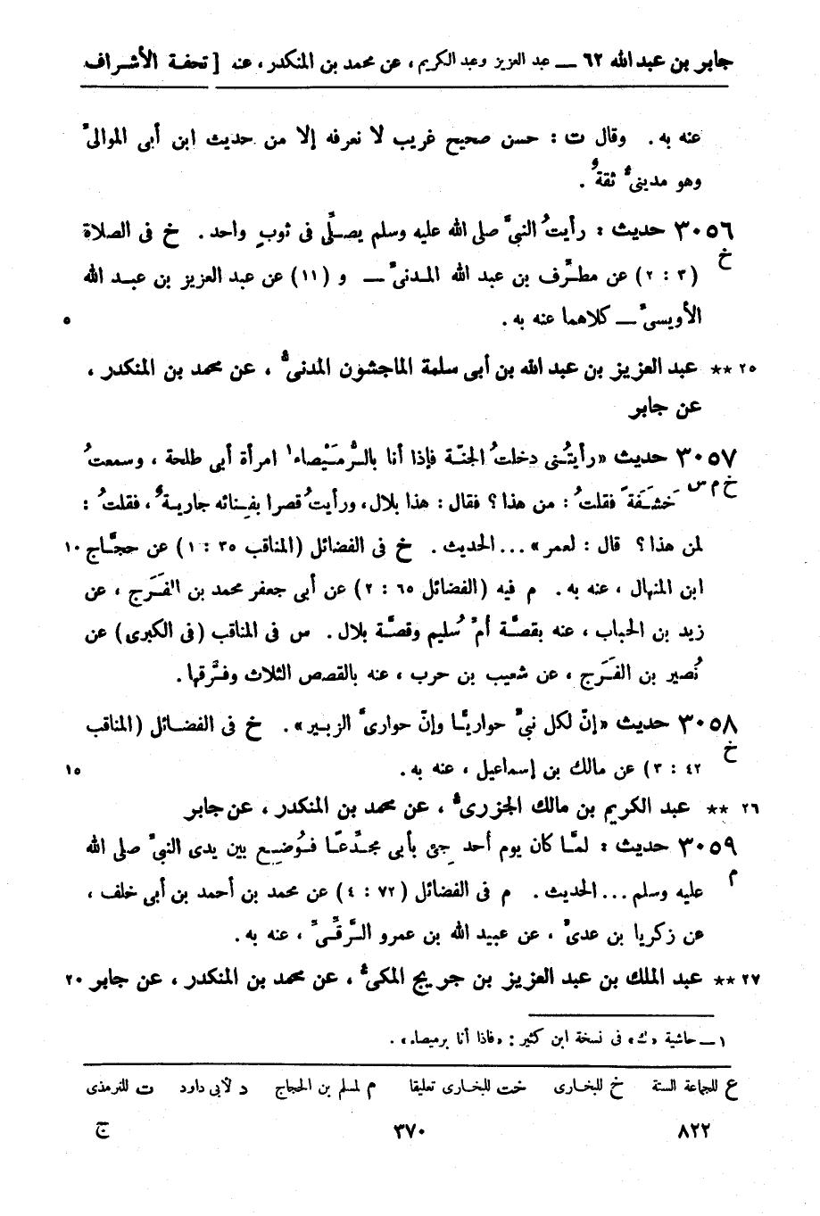 م فيه (الفضائل 65: 2) عن أبي جعفر محمد بن الفَرَج، عن زيد بن الحباب، عنه بقصَّة أُمِّ سُليم وقصَّة بلال.