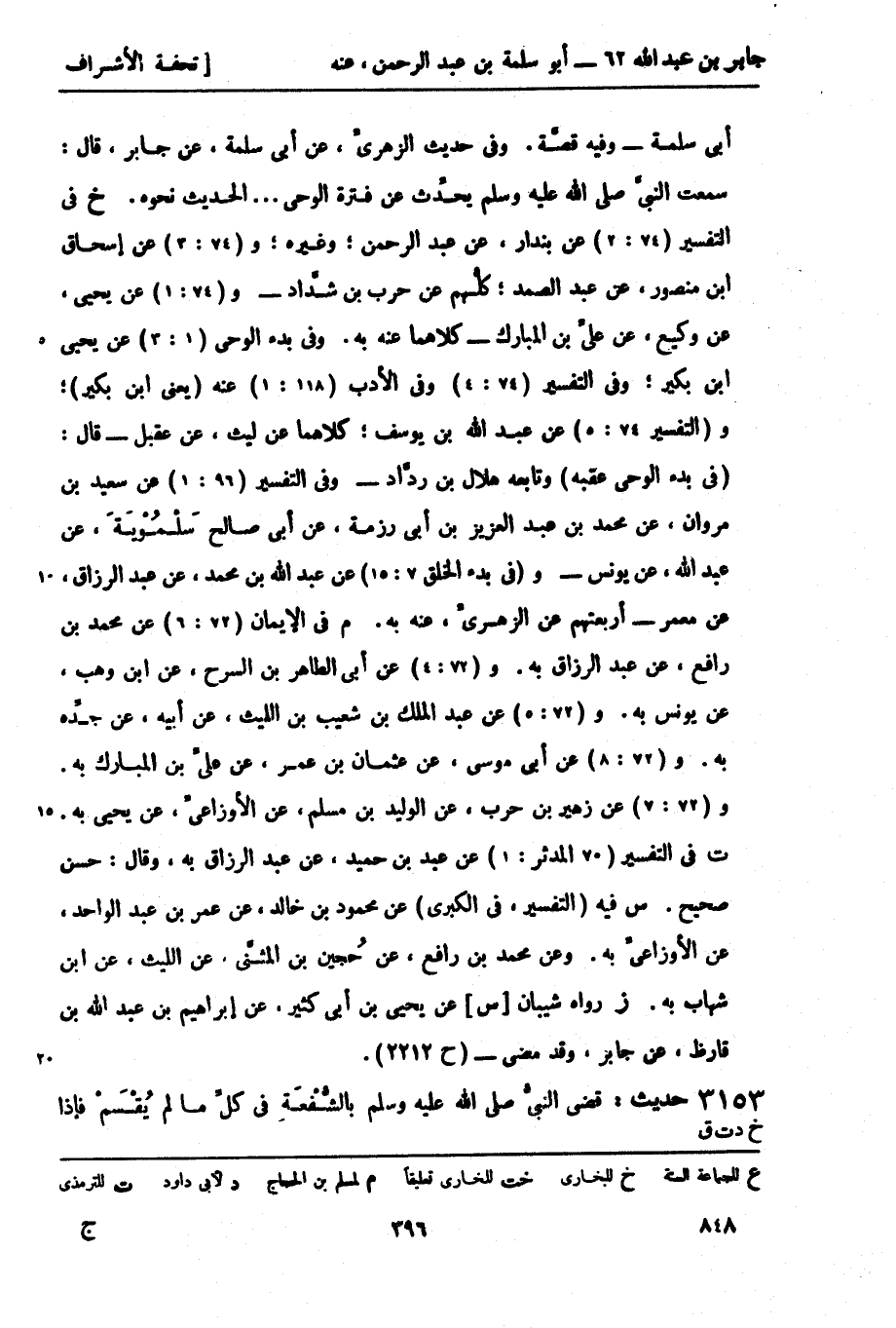 3153 -[خ د ت ق] حديث: قضى النبيُّ صَلَّى اللَّهُ عَلَيْهِ وَسَلَّمَ بالشُّفْعَةِ في كلِّ ما لم يُقْسَمْ فإذا -[397]- وقَعتِ الحدود وصرفت الطرق فلا شفعة. (خ) في البيوع (97: 1) عن محمد بن محبوب، وفيه (البيوع 97: 2) وفي الشفعة (1) وفي الشركة (9) عن مسدَّد، كلاهما عن عبد الواحد بن زياد وفي الشركة (8) وفي ترك الحيل (14: 2) عن عبد الله بن محمد، عن هشام - وفي البيوع (96) عن محمود، عن عبد الرزاق - ثلاثتهم عن معمر، عن الزهريِّ، عنه به