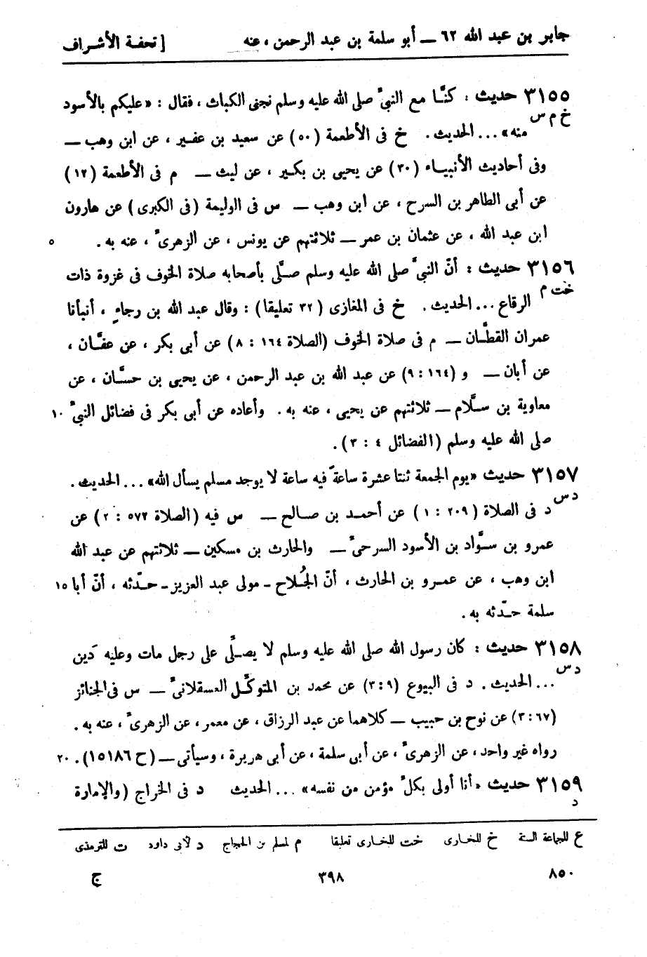 س فيه (الصلاة 572: 2) عن عمرو بن سوَّاد بن الأسود السرحيِّ - والحارث بن مسكين - ثلاثتهم عن عبد الله بن وهب، عن عمرو بن الحارث، أنّ الجُلاح - مولى عبد العزيز - حدّثه، أنّ أبا سلمة حدّثه به.