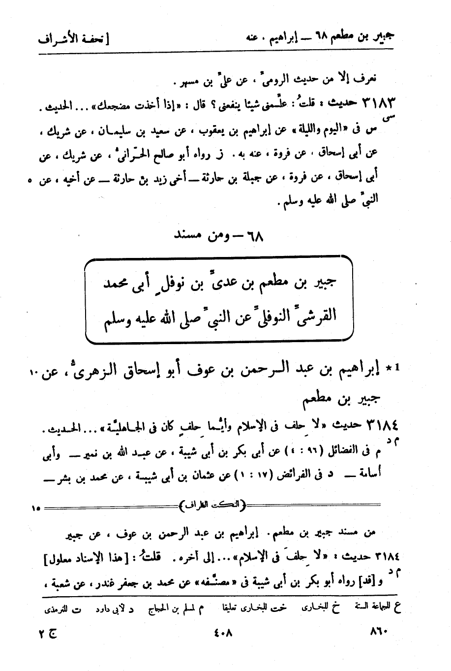 د في الفرائض (17: 1) عن عثمان بن أبي شيبة، عن محمد بن بشر -[409]- وابن نمير - وأبي أسامة - ثلاثتهم عن زكريا بن أبي زائدة، عن سعد بن إبراهيم، عن أبيه به. رواه إسحاق الأزرق [س] ، عن زكريا، عن سعد بن إبراهيم، عن نافع بن جبير، عن أبيه، وسيأتي - (ح3202) .