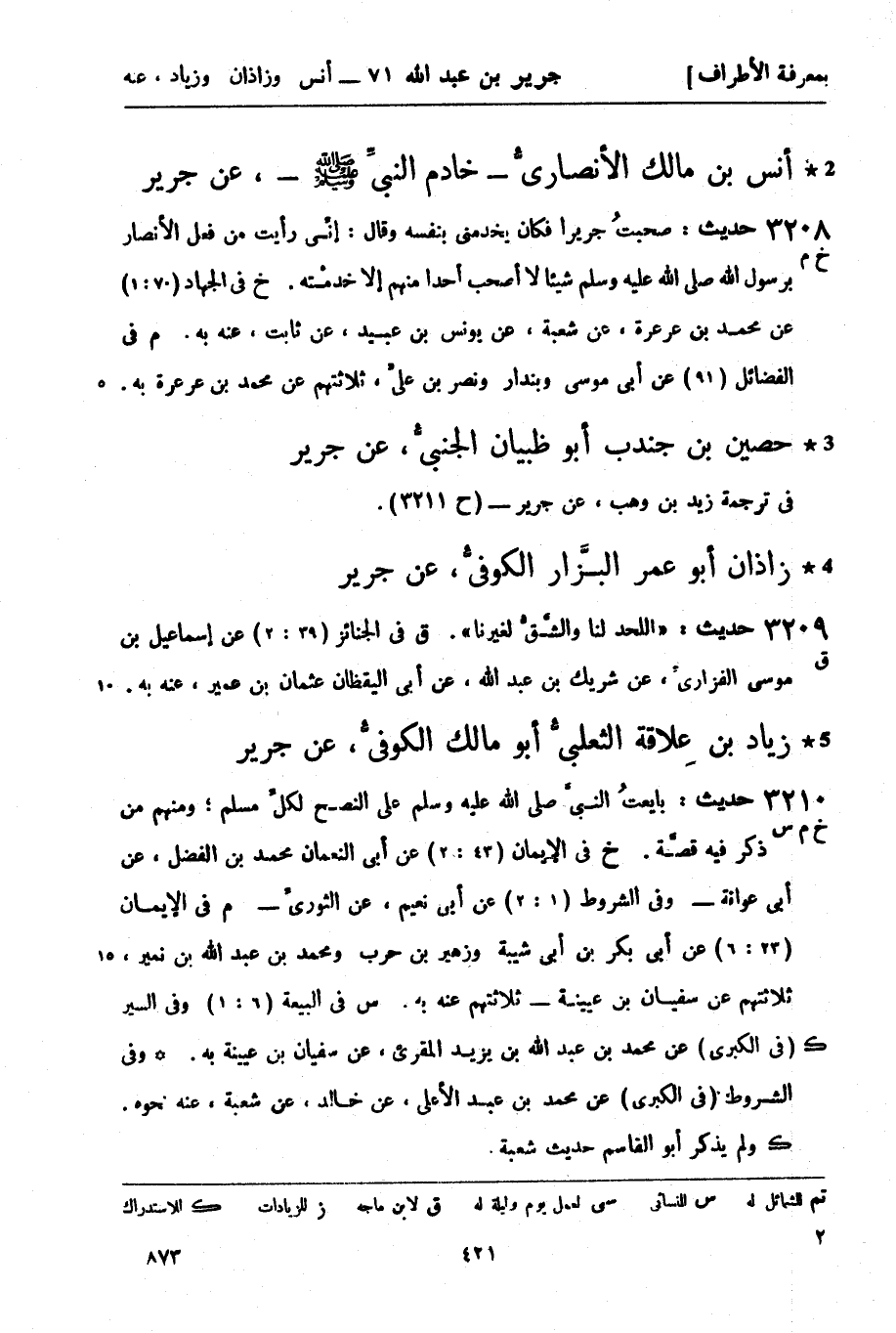 3208 - حديث: صحبتُ جريراً فكان يخدمني بنفسه وقال: إنِّي رأيت من فعل الأنصار برسول الله صَلَّى اللَّهُ عَلَيْهِ وَسَلَّمَ شيئاً لا أصحب أحداً منهم إلا خدمْته.