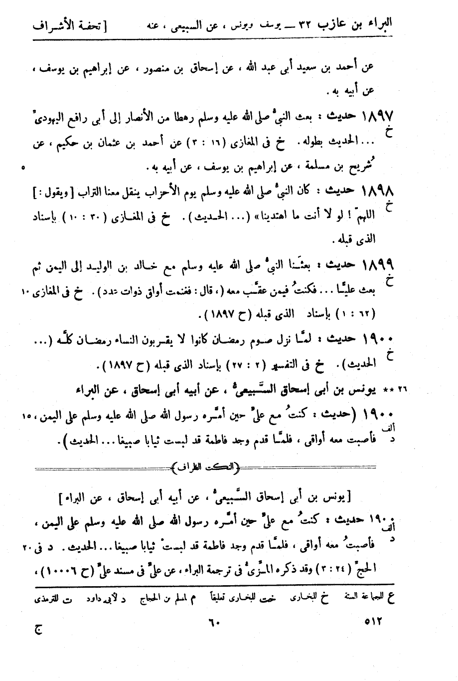 1899 -[خ] حديث: بعثَنا النبيُّ صَلَّى اللَّهُ عَلَيْهِ وَسَلَّمَ مع خالد بن الوليد إلى اليمن ثم بعث عليًّا ... فكنتُ فيمن عقَّب معه (قال: فغنمت أواق ذوات عدد) . خ في المغازي (62: 1) بإسنادي الذي قبله (ح1897) .