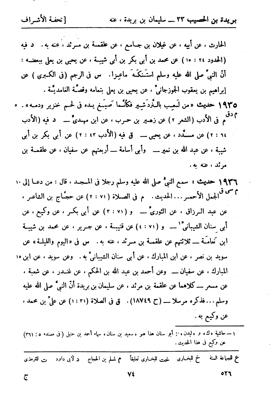 1936 -[م سي ق] حديث: سمع النبي صَلَّى اللَّهُ عَلَيْهِ وَسَلَّمَ رجلا في المسجد، قال: من دعا إلى الجمل الأحمر ... الحديث. م في الصلاة (71: 2) عن حجاج بن الشاعر، عن عبد الرزاق، عن الثوري - و (71: 3) عن أبي بكر، عن وكيع، عن أبي سنان الشيباني 1 - و (71: 4) عن قتيبة، عن جرير، عن محمد بن شيبة بن نعامة - ثلاثتهم عن علقمة بن مرثد، عنه به. س في اليوم والليلة عن سويد بن نصر، عن ابن المبارك، عن أبي سنان الشيباني به. وعن سويد، عن ابن المبارك، عن سفيان - وعن أحمد بن عبد الله بن الحكم، عن غندر، عن شعبة، عن مسعر - كلاهما عن علقمة بن مرثد، عن سليمان بن بريدة أن النبي صَلَّى اللَّهُ عَلَيْهِ وَسَلَّمَ ... فذكره مرسلا - (ح18749) . ق في الصلاة (31: 1) عن علي بن محمد، عن وكيع به.