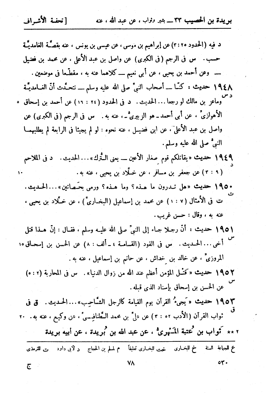 1952 -[س] حديث قتل المؤمن أعظم عند الله من زوال الدنيا. س في المحاربة (2: 5) عن الحسن بن إسحاق بإسناد الذي قبله.