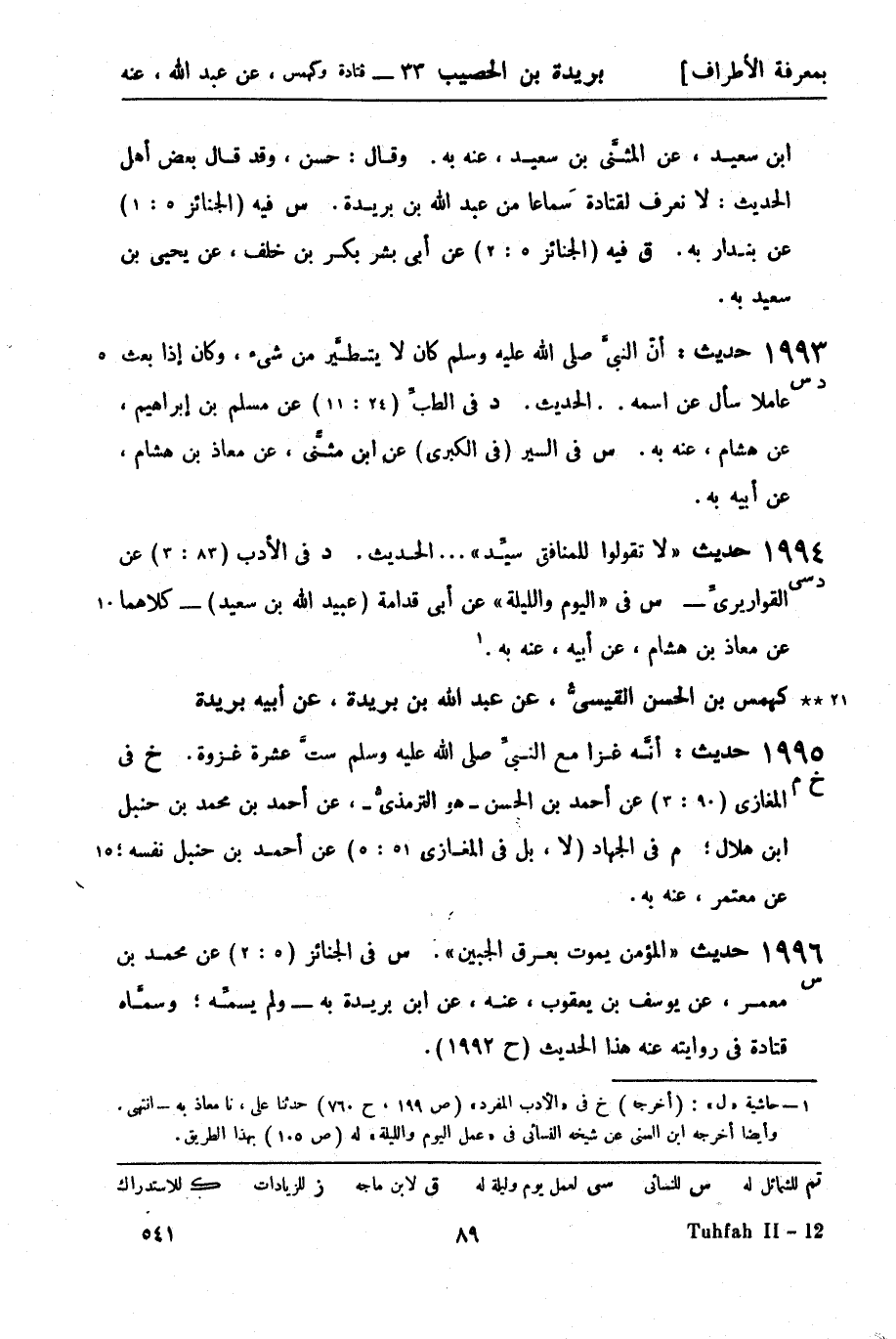 1996 -[س] حديث المؤمن يموت بعرق الجبين. س في الجنائز (5: 2) عن محمد بن معمر، عن يوسف بن يعقوب، عنه، عن ابن بريدة به - ولم يسمه، وسماه قتادة في روايته عنه هذا الحديث (ح1992) .