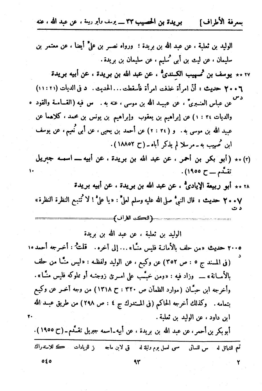 2006 -[د س] حديث: أن امرأة خذفت امرأة فأسقطت ... الحديث. د في الديات (21: 11) ، عن عباس العنبري، عن عبيد الله بن موسى، عنه به. س فيه (القسامة والقود والديات 34: 1) عن إبراهيم بن يعقوب وإبراهيم بن يونس بن محمد، كلاهما عن عبيد الله بن موسى به. و (34: 2) عن أحمد بن يحيى، عن أبي نعيم، عن يوسف بن صهيب به - مرسلا لم يذكر أباه - (ح18852) .