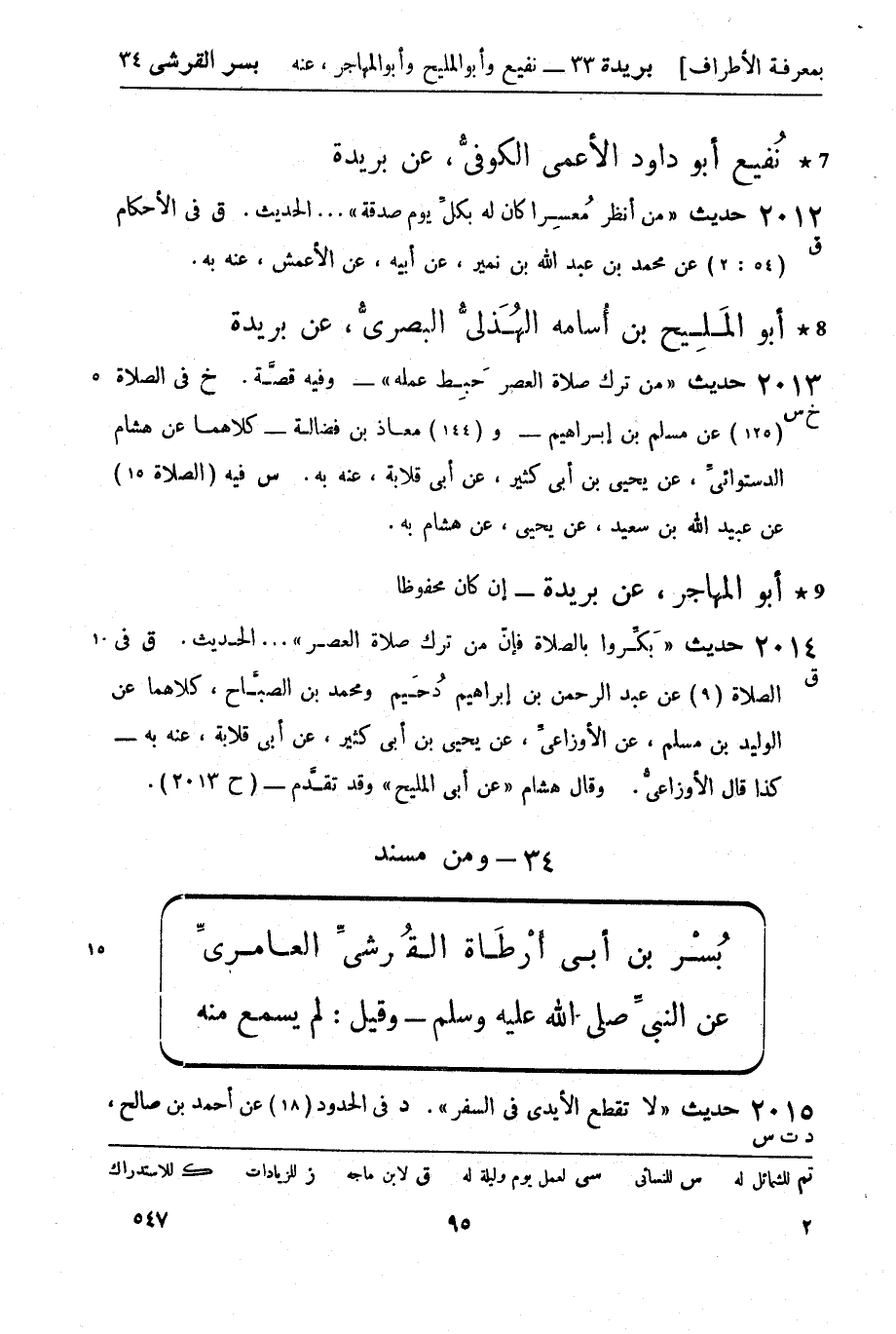 ومن مسند بسر بن أبي أرطأة القرشي العامري عن النبي صَلَّى اللَّهُ عَلَيْهِ وَسَلَّمَ - وقيل: لم يسمع منه