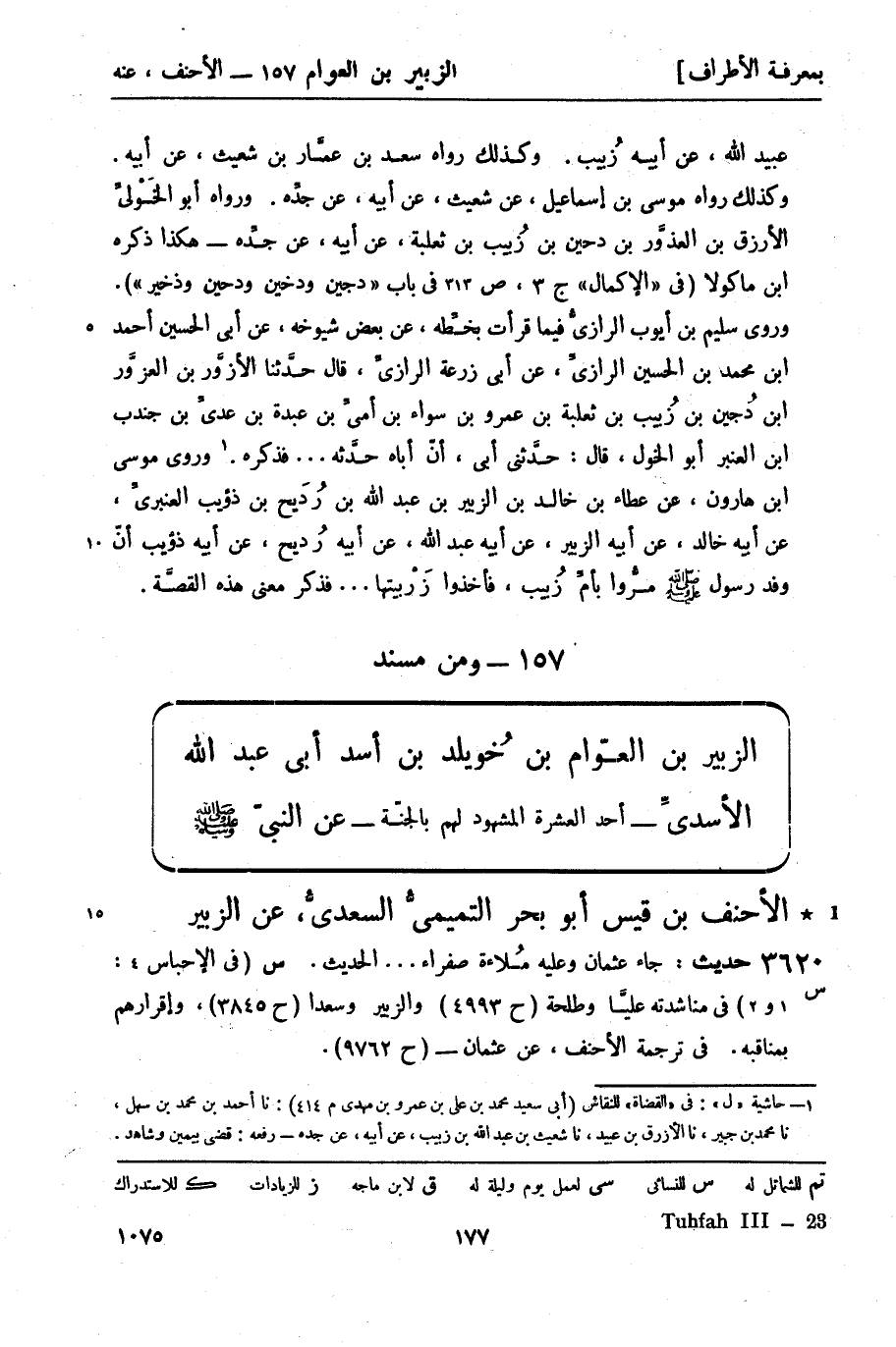 س (في الإحباس 4: 1 و2) في مناشدته عليَّا وطلحة (ح 4993) والزبير وسعداً (ح 3845) ، وإقرارهم بمناقبه. في ترجمة الأحنف، عن عثمان - (ح 9762) .