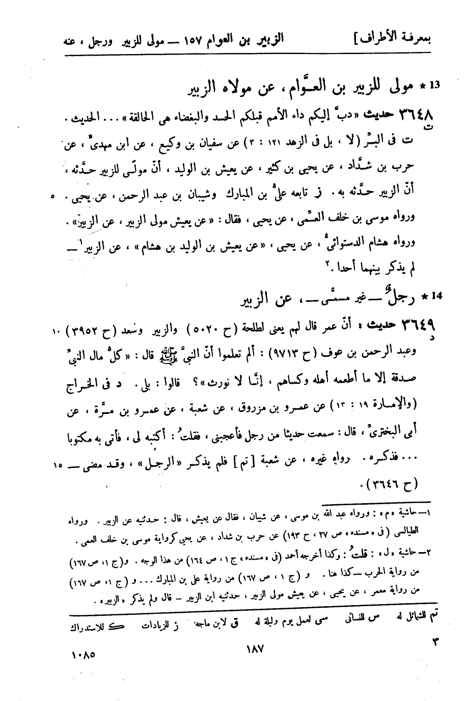 ت في البرِّ (لا، بل في الزهد 121: 3) عن سفيان بن وكيع , عن ابن مهديَ , عن حرب بن شدَّاد , عن يحيى بن كثير , عن يعيش بن الوليد , أنّ مولًى للزبير حدَّثه، أنّ الزبير حدَّثه به. (ز) تابعه عليُّ بن المبارك وشيبان بن عبد الرحمن , عن يحيى ورواه موسى بن خلف العمِّي , عن يحيى , فقال: عن يعيش مولى الزبير , عن الزبير. ورواه هشام الدستوائيُّ، عن يحيى، عن يعيش بن الوليد بن هشام، عن الزبير1 - لم يذكر بينهما أحداً2.