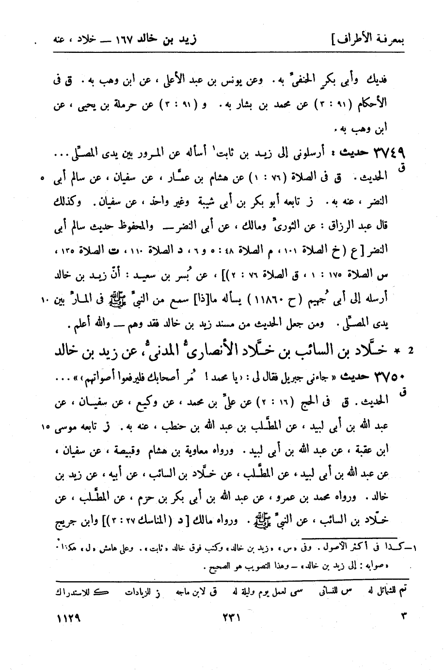 ق في الصلاة (76: 1) عن هشام بن عمَّار , عن سفيان , عن سالم أبي النضر , عنه به. (ز) تابعه أبو بكر بن أبي شيبة وغير واحد , عن سفيان. وكذلك قال عبد الرزاق: عن الثوريِّ ومالك , عن أبي النضر - والمحفوظ حديث سالم أبي النضر [ع (خ الصلاة 101، م الصلاة 48: 5و6، د الصلاة 110، ت الصلاة 135، س الصلاة 175: 1، ق الصلاة 76: 2) ] , عن بُسر بن سعيد: أنّ زيد بن خالد أرسله إلى أبي جُهيم (ح 11860) يسأله ما [ذا] سمع من النبيِّ صَلَّى اللَّهُ عَلَيْهِ وَسَلَّمَ في المارِّ بين يدي المصلِّي. ومن جعل الحديث من مسند زيد بن خالد فقد وهم - والله أعلم.