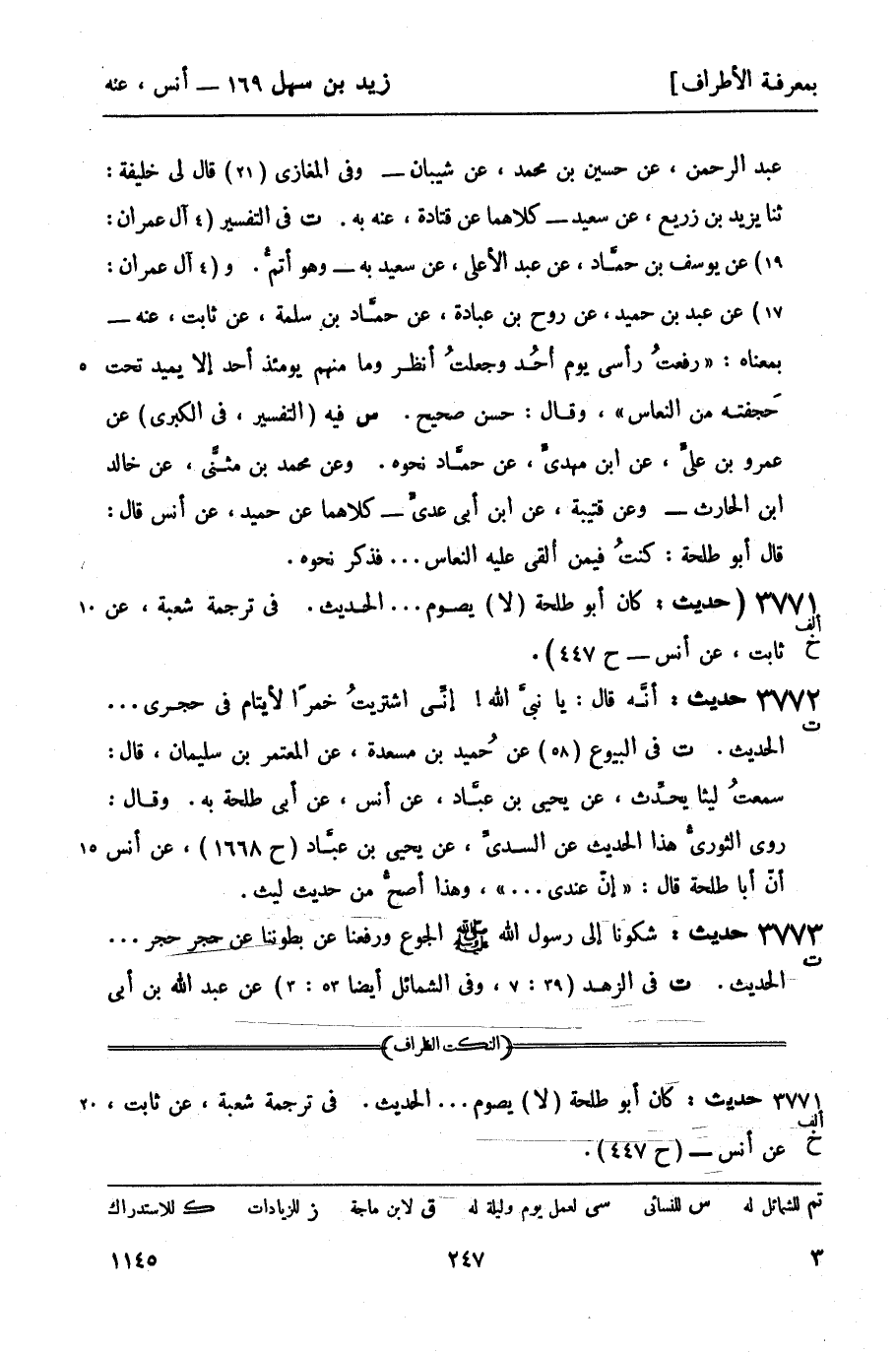 ت في الزهد (39: 7 , وفي الشمائل أيضاً 53: 3) عن عبد الله بن أبي -[248]- زياد , عن سيَّار بن حاتم , عن سهل بن أسلم , عن يزيد بن أبي منصور , عنه به. وقال: غريب لا نعرفه إلا من هذا الوجه.