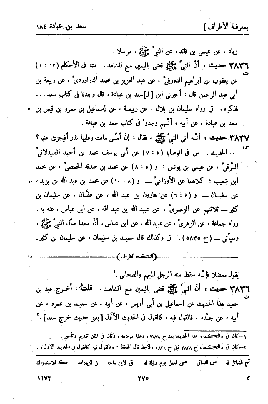 ت في الأحكام (13: 1) عن يعقوب بن إبراهيم الدورقيِّ , عن عبد العزيز بن محمد الدراورديِّ , عن ربيعة بن أبي عبد الرحمن قال: أخبرني ابن [ل] سعد بن عبادة , قال وجدنا في كتاب سعد ... فذكره. (ز) رواه سليمان بن بلال , عن ربيعة , عن إسماعيل بن عمرو بن قيس بن سعد بن عبادة , عن أبيه , أنَّهم وجدوا في كتاب سعد بن عبادة.