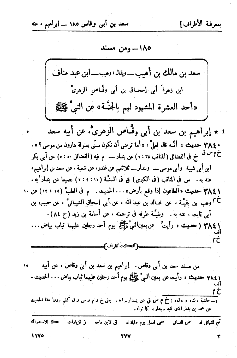 ومن مسند سعد بن مالك بن أهيب - ويقال: وهيب - ابن عبد مناف بن زهرةَ أبي إسحاق بن أبي وقَّاصٍ الزهريِّ أحد العشرة المشهود لهم بالجنَّة عن النبي صَلَّى اللَّهُ عَلَيْهِ وَسَلَّمَ.