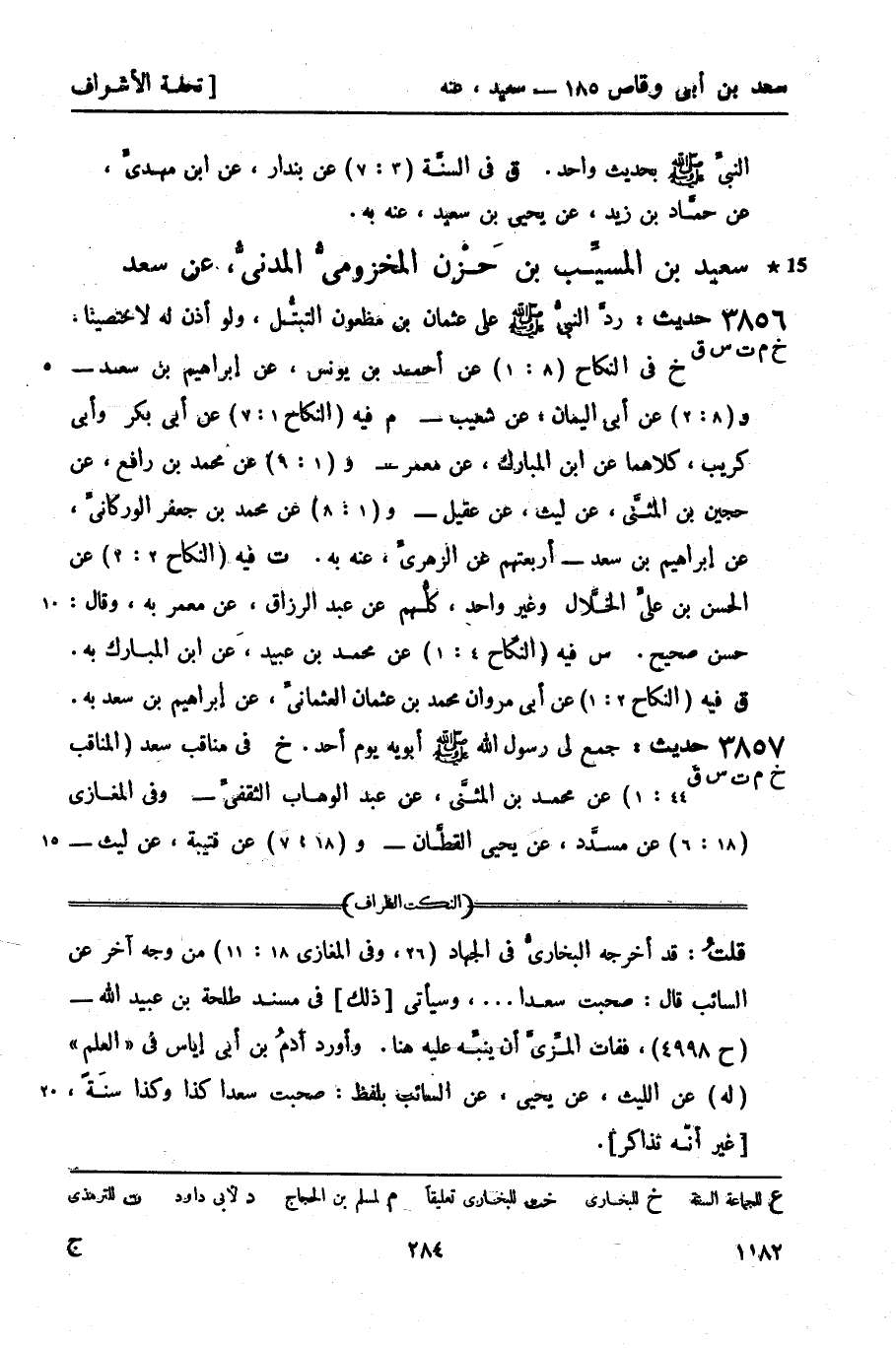 ت في الاستئذان (95: 3) وفي المناقب (91: 2) عن قتيبة , عن ليث والدراورديِّ , كلاهما عن يحيى بن سعيد به , وقال: صحيح.