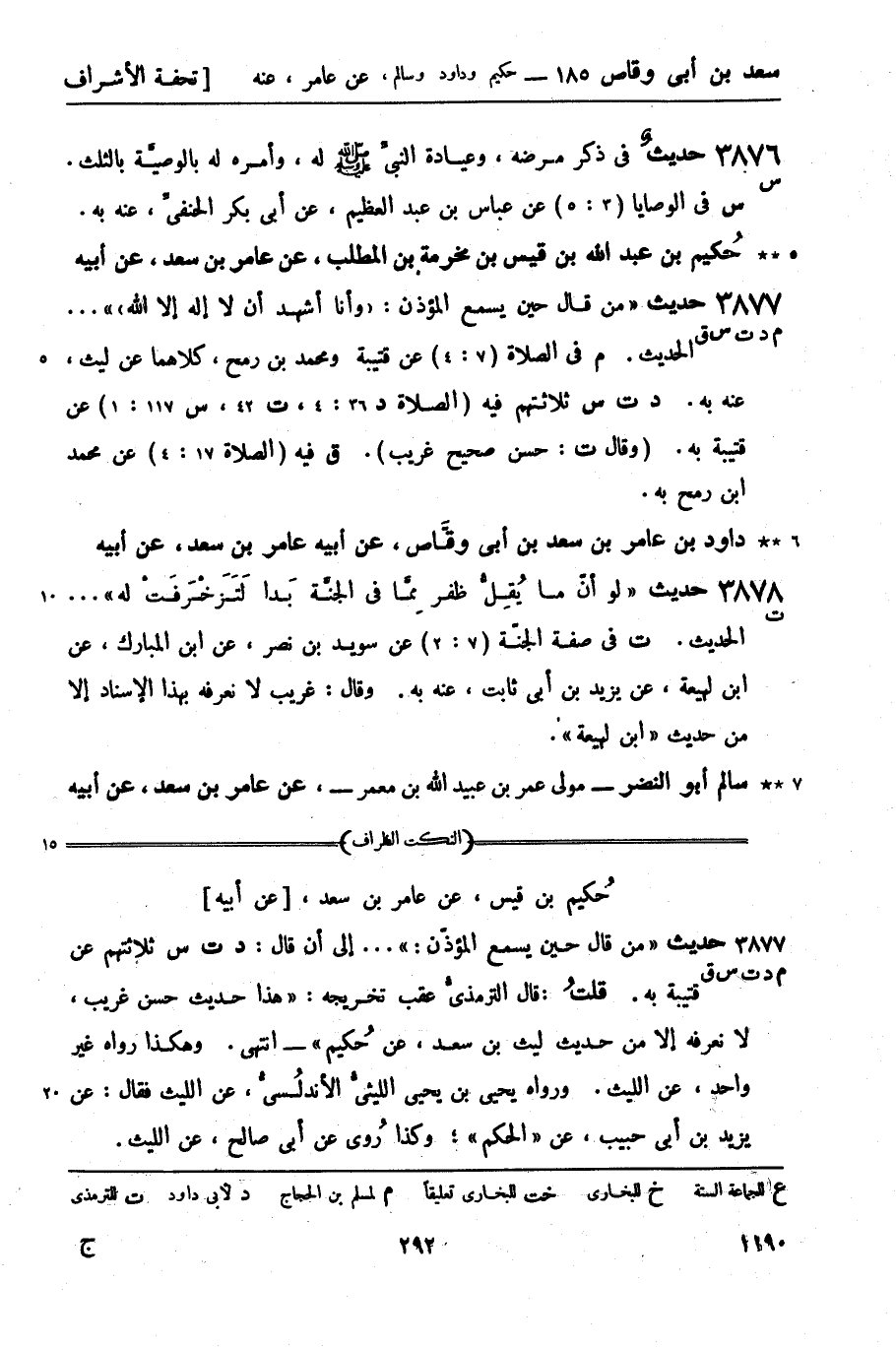م في الصلاة (7: 4) عن قتيبة ومحمد بن رمح , كلاهما عن ليث , عنه به. (د ت س) ثلاثتهم فيه (الصلاة د 36: 4، ت 42، س 117: 1) عن قتيبة به. (وقال ت: حسن صحيح غريب) . ق فيه (الصلاة 17: 4) عن محمد بن رمح به.