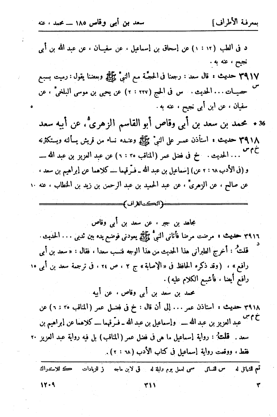 3918 -[س] حديث: قال سعد: رجعنا في الحجَّة مع النبيِّ صَلَّى اللَّهُ عَلَيْهِ وَسَلَّمَ وبعضنا يقول: رميت بسبع حصيات ... الحديث.