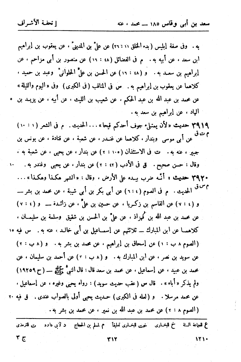 م في الصوم (4: 6) عن أبي بكر بن أبي شيبة , عن محمد بن بشر - و (4: 7) عن القاسم بن زكريا , عن حسين بن عليَ , عن زائدة - و (4: 7) عن محمد بن عبد الله بن قُهزاذ , عن عليِّ بن الحسن بن شقيق وسلمة بن سليمان , كلاهما عن ابن المبارك - ثلاثتهم عن إسماعيل بن أبي خالد , عنه به.