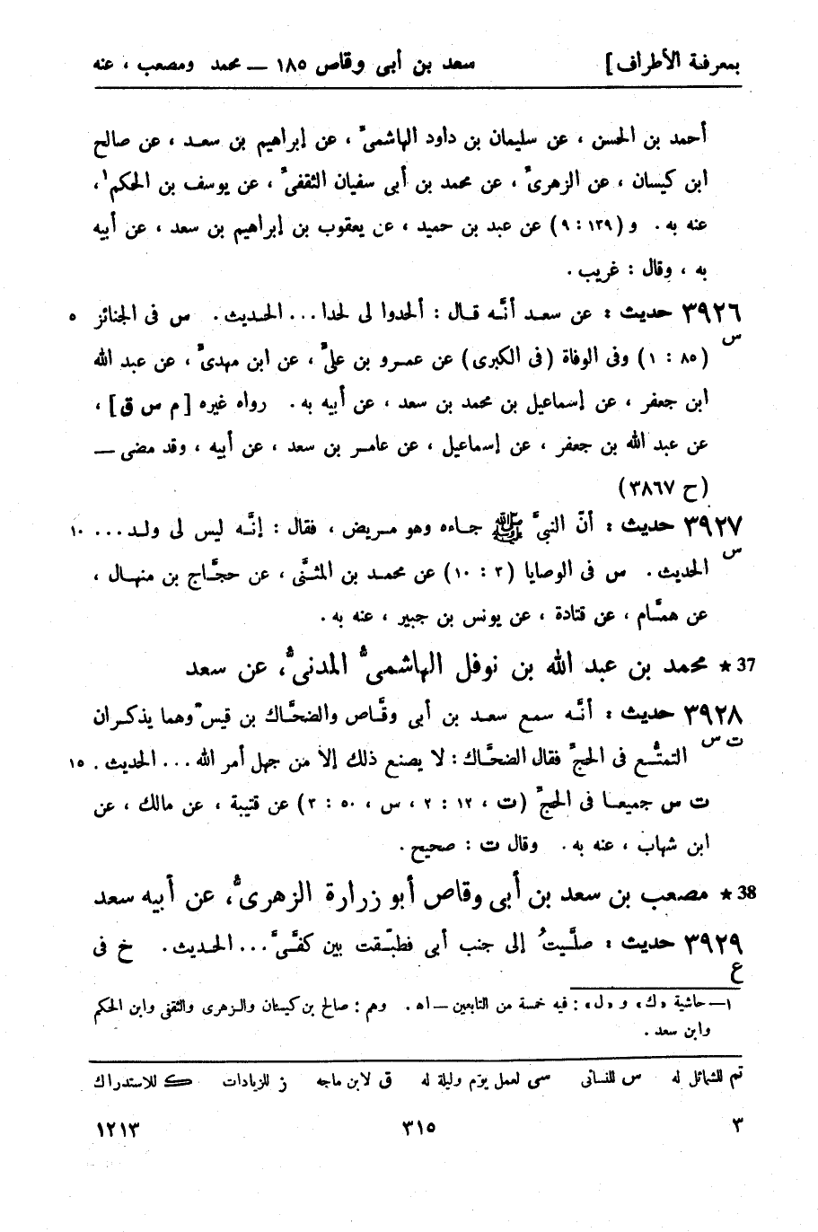 م فيه (الصلاة 58: 4) عن قتيبة وأبي كامل , كلاهما عن أبي عوانة - و (58: 5) عن خلف بن هشام , عن أبي الأحوص - و (58: 5) عن ابن أبي عمر , عن سفيان - ثلاثتهم عن أبي يعفور2 به. و (58: 6) عن أبي بكر بن أبي شيبة , عن وكيع - و (58: 7) عن الحكم بن موسى , عن عيسى بن يونس - كلاهما عن إسماعيل بن أبي خالد , عن الزبير بن عديَ , عنه به.