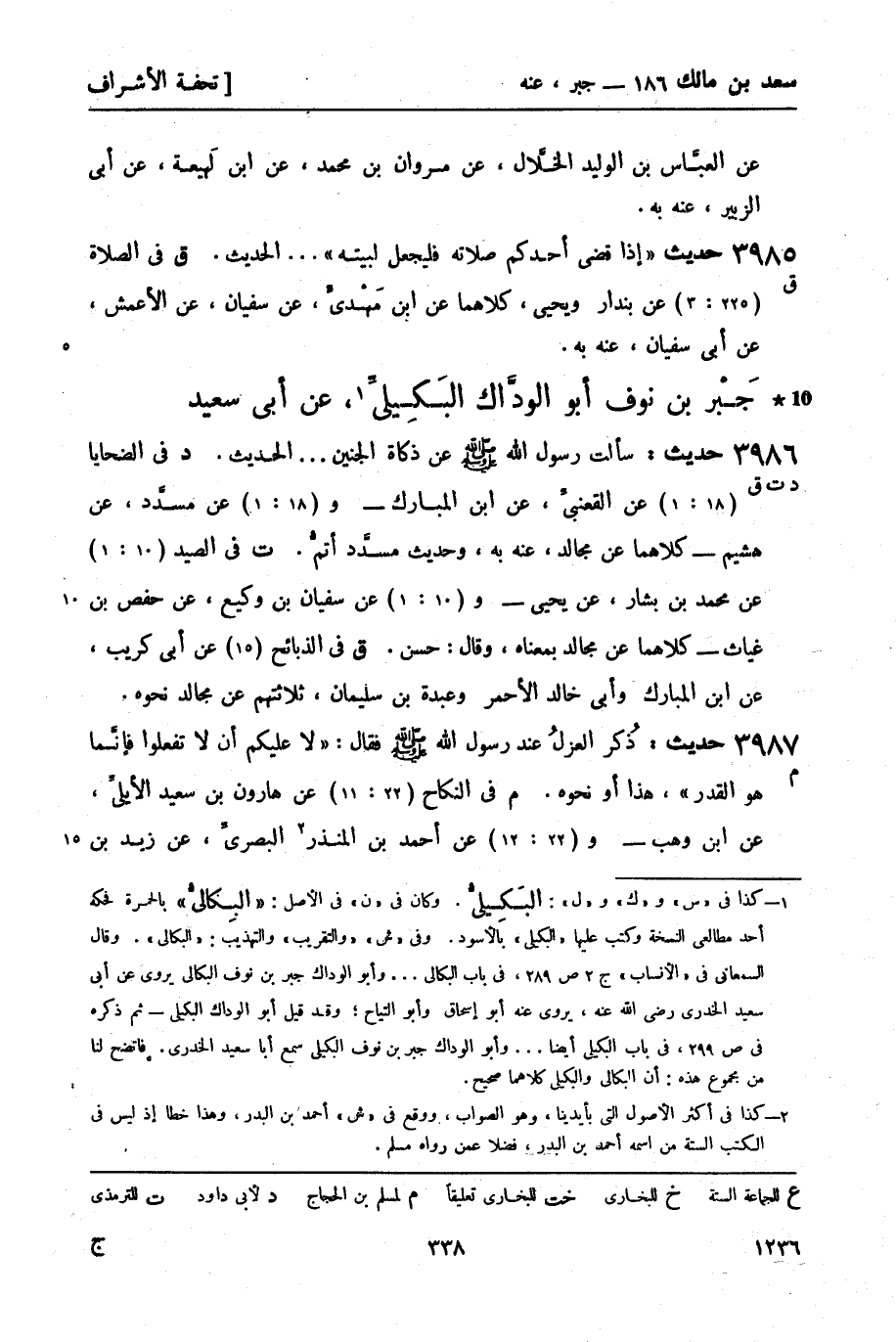 ت في الصيد (10: 1) عن محمد بن بشار , عن يحيى - و (10: 1) عن سفيان بن وكيع , عن حفص بن غياث - كلاهما عن مجالد بمعناه , وقال: حسن.