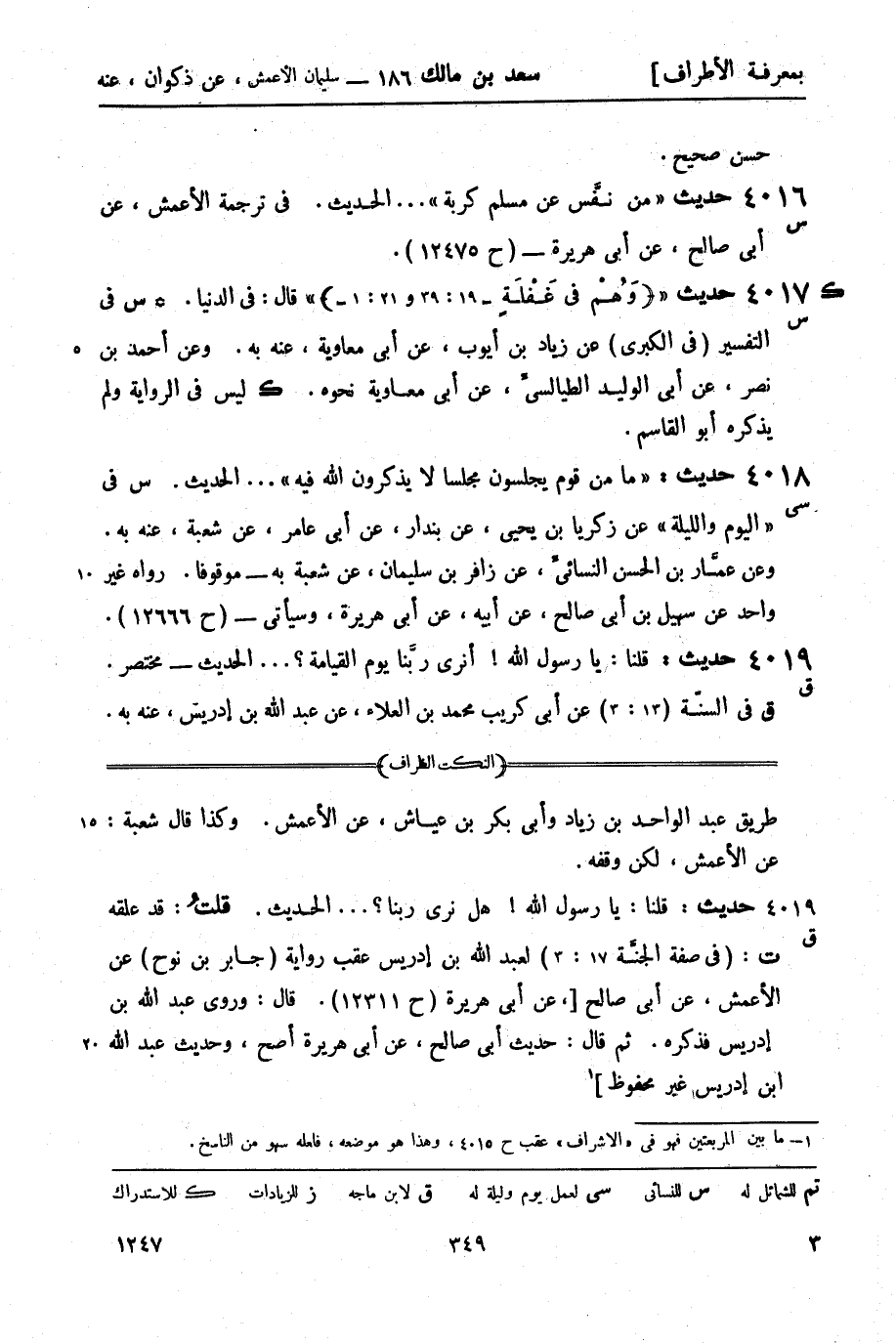 4016 -[س] حديث من نفَّس عن مسلم كربة..... الحديث. في ترجمة الأعمش، عن أبي صالح عن أبي هريرة - (ح 12475) . (ك) 4017
