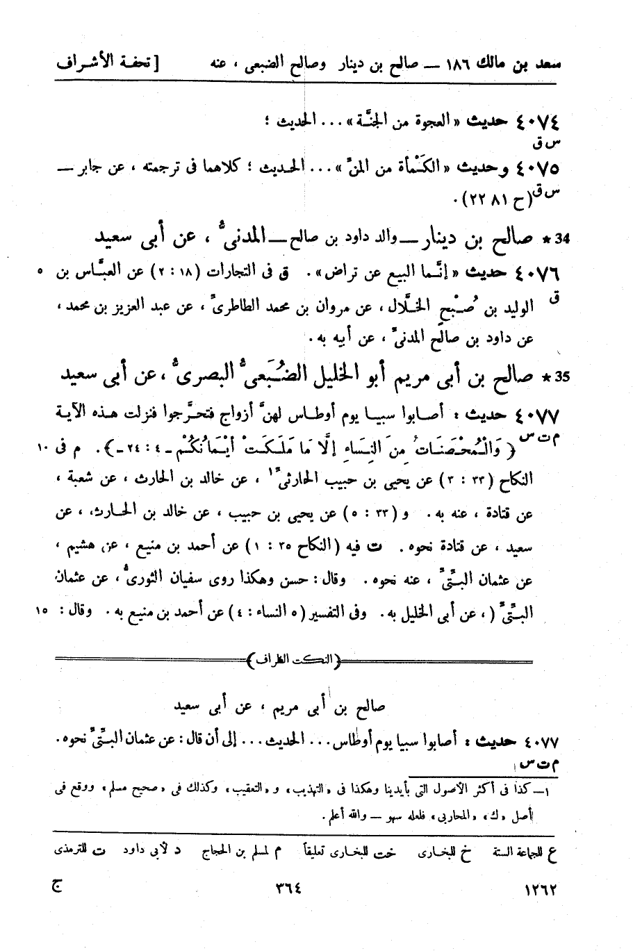 ت فيه (النكاح 35: 1) عن أحمد بن منيع، عن هشيم، عن عثمان البتِّيِّ، عنه نحوه. وقال: حسن وهكذا روى سفيان الثوريُّ، عن عثمان البتِّيِّ (, عن أبي الخليل به. وفي التفسير (5 النساء: 4) عن أحمد بن منيع به. وقال: -[365]- حسن؛ وهكَذا روى الثوريُّ، عن عثمان البتِّيِّ، عن أبي الخليل، عن أبي سعيد الخدريِّ عن النبيِّ صَلَّى اللَّهُ عَلَيْهِ وَسَلَّمَ نحوه. وليس في هذا الحديث عن أبي علقمة، ولا أعلم أنّ أحداً ذكره فيه إلا ما ذكر همَّام، عن قتادة - ح 4434) . [ك س (النكاح، في الكبرى) عن أحمد بن سليمان الرهاويِّ، عن معاوية بن هشام، عن سفيان - وهو الثوريُّ -] وفي التفسير (في الكبرى) عن يحيى بن حكيم، عن غندر، عن شعبة [- كلاهما] عن عثمان البتِّيِّ نحوه. (ز) هكذا وقع في صحيح مسلم والمحفوظ حديث سعيد [م (النكاح 33: 2) د (النكاح 45: 1، ت النكاح 35: 2، والتفسير 5 النساء: 3) س (النكاح 59) ] عن قتادة، عن أبي الخليل، عن أبي علقمة، عن أبي سعيد، كما سيأتي - (ح 4434) . [ك حديث أحمد بن سليمان الرهاويُّ في رواية ابن الأحمر ولم يذكره أبو القاسم] .