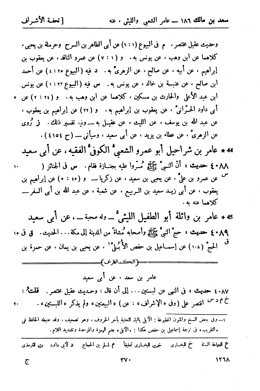 س في الجنائز (45: 3) عن عمرو بن عليَ، عن يحيى بن سعيد، عن زكريا - و (45: 3) عن إبراهيم بن يعقوب، عن أبي زيد سعيد بن الربيع، عن شعبة، عن عبد الله بن أبي السفر - كلاهما عنه به.