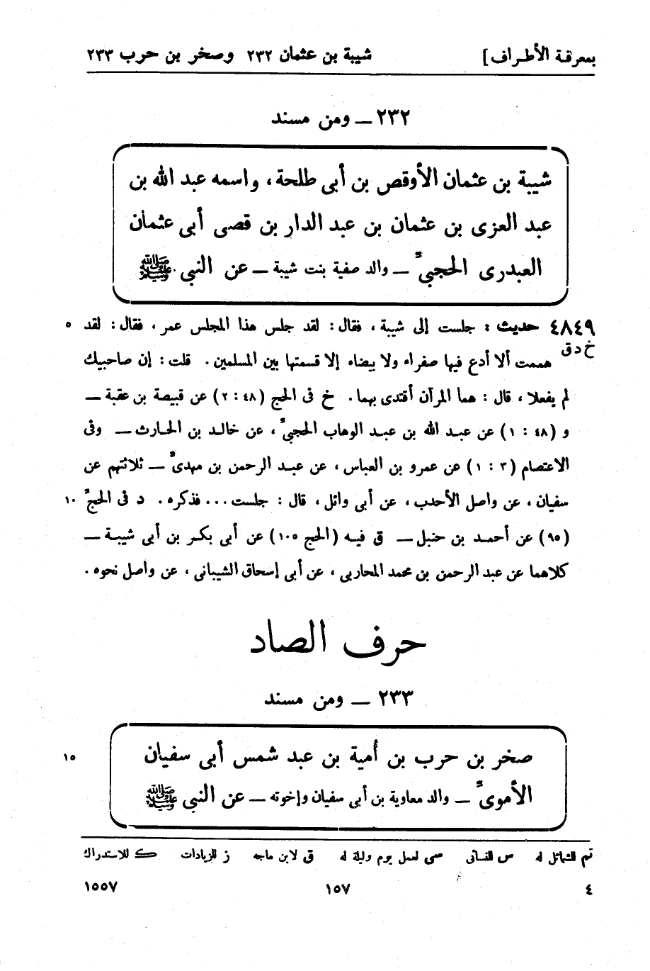 ومن مسند شيبة بن عثمان الأوقص بن أبي طلحة، واسمه عبد الله بن عبد العزى بن عثمان بن عبد الدار بن قصي أبي عثمان العبدري الحجي - والد صفية بنت شيبة - عن النَّبِيّ صَلَّى اللَّهُ عَلَيْهِ وَسَلَّمَ