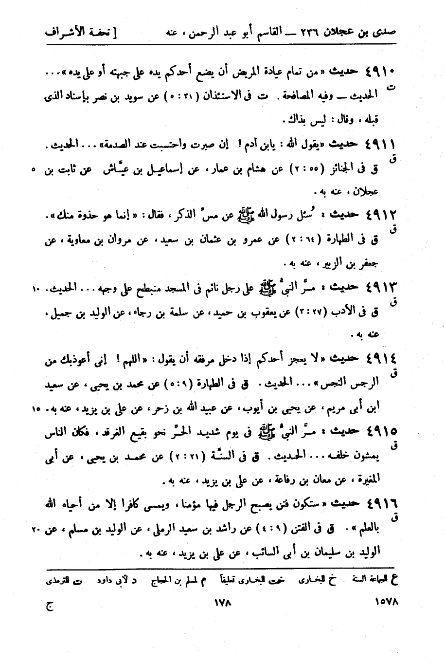 4911 -[ق] حديث يقول الله: يابن آدم! إن صبرت واحتسبت عند الصدمة ... الحديثَ. ق في الجنائز (55: 2) عن هشام بن عمار، عن إسماعيل بن عيَّاش، عن ثابت بن عجلان، عنه به.