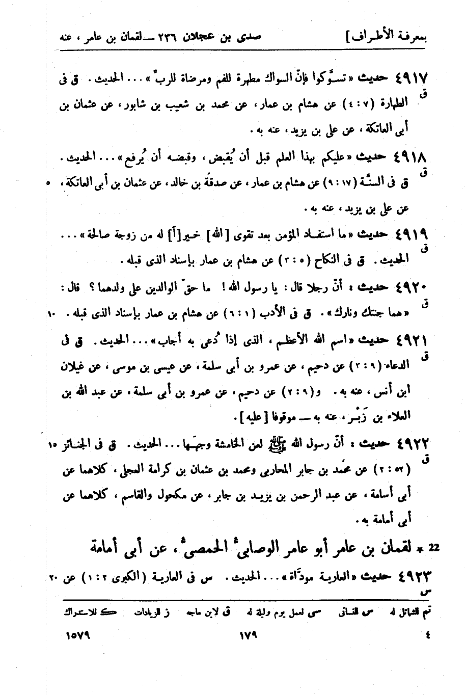 4919 -[ق] حديث ما استفاد المؤمن بعد تقوى [الله] خير [ًا] له من زوجة صالحة ... الحديثَ. ق في النكاح (5:) عن هشام بن عمار بإسناد الذي قبله.