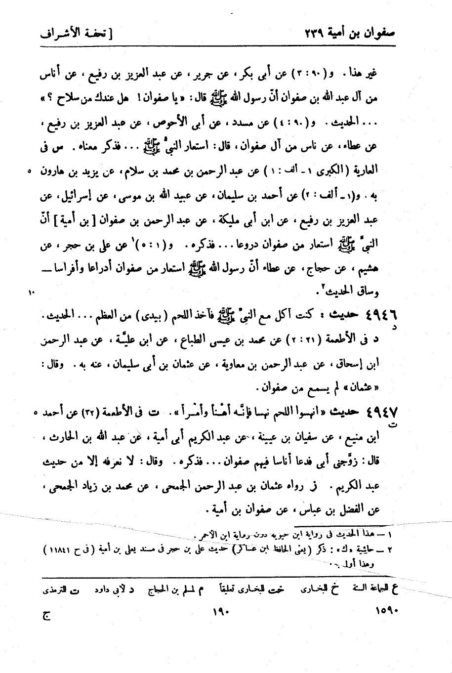4946 -[د] حديث: كنت أكل مع النبيِّ صَلَّى اللَّهُ عَلَيْهِ وَسَلَّمَ فأخذ اللحم (بيدي) من العظم ... الحديثَ. د في الأطعمة (21: 2) عن محمد بن عيسى الطباخ، عن ابن عليَّة، عن عبد الرحمن بن إسحاق، عن عبد الرحمن بن معاوية، عن عثمان بن أبي سليمان، عنه بِهِ. وقال: عثمان لم يسمع من صفوان.