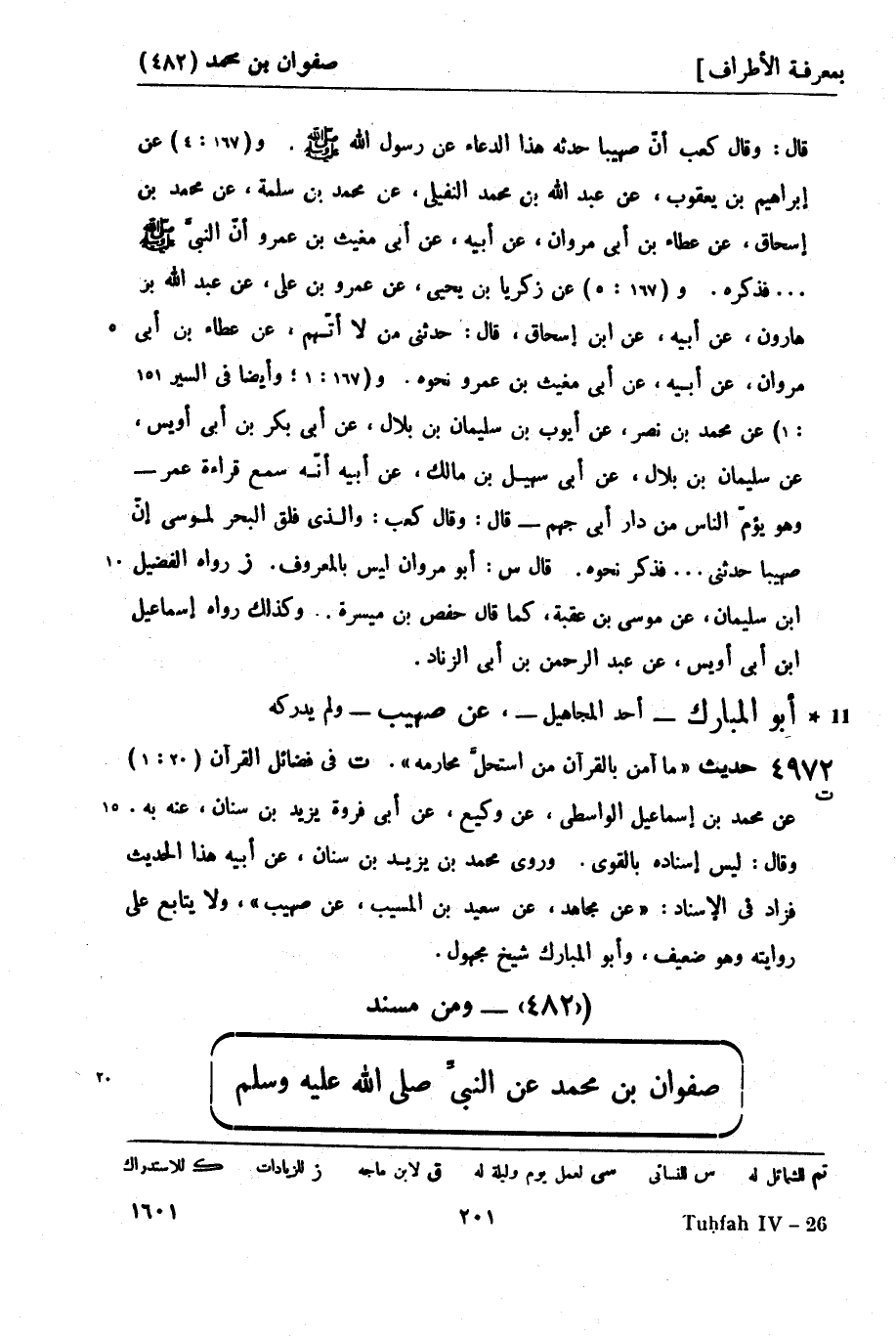 (482) - ومن مسند صفوان بن محمد عن النبيِّ صَلَّى اللَّهُ عَلَيْهِ وَسَلَّمَ -[202]- ذكر في محمد بن صفوان - (ح 11224) ، لم ينبه المزي عليه) .