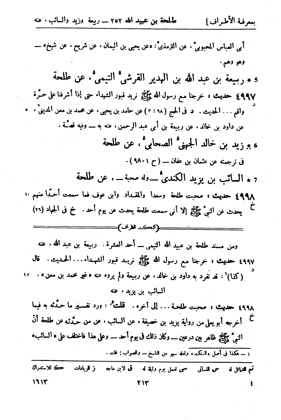 زيد بن خالد الجهنيُّ الصحابيُّ، عن طلحة في ترجمته عن عثمان بن عفان - (ح 9801) .
