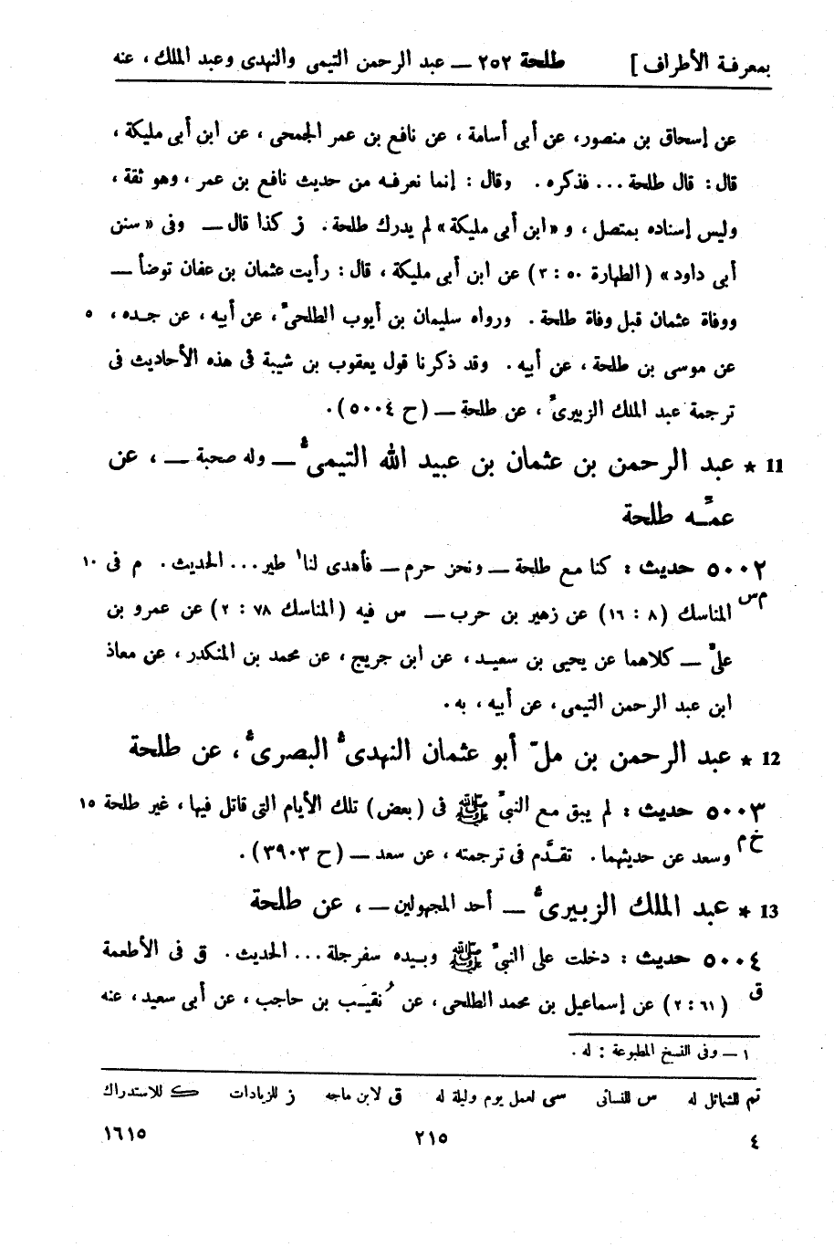 عبد الرحمن بن ملّ أبو عثمان النهديُّ البصريُّ، عن طلحة