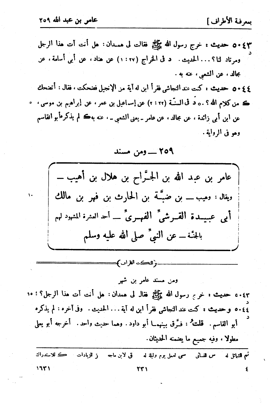5044 -[د] حديث: كنت عند النجاشي فقرأ ابن له آية من الإنجيل فضحكت، فقال: أتضحك من كلام الله؟. د في السنّة (22: 2) عن إسماعيل بن عمر، عن إبراهيم بن موسى، عن ابن أبي زائدة، عن مجالد، عن عامر - يعني الشعبي -، عنه به. لم يذكره أبو القاسم وهو في الرواية.