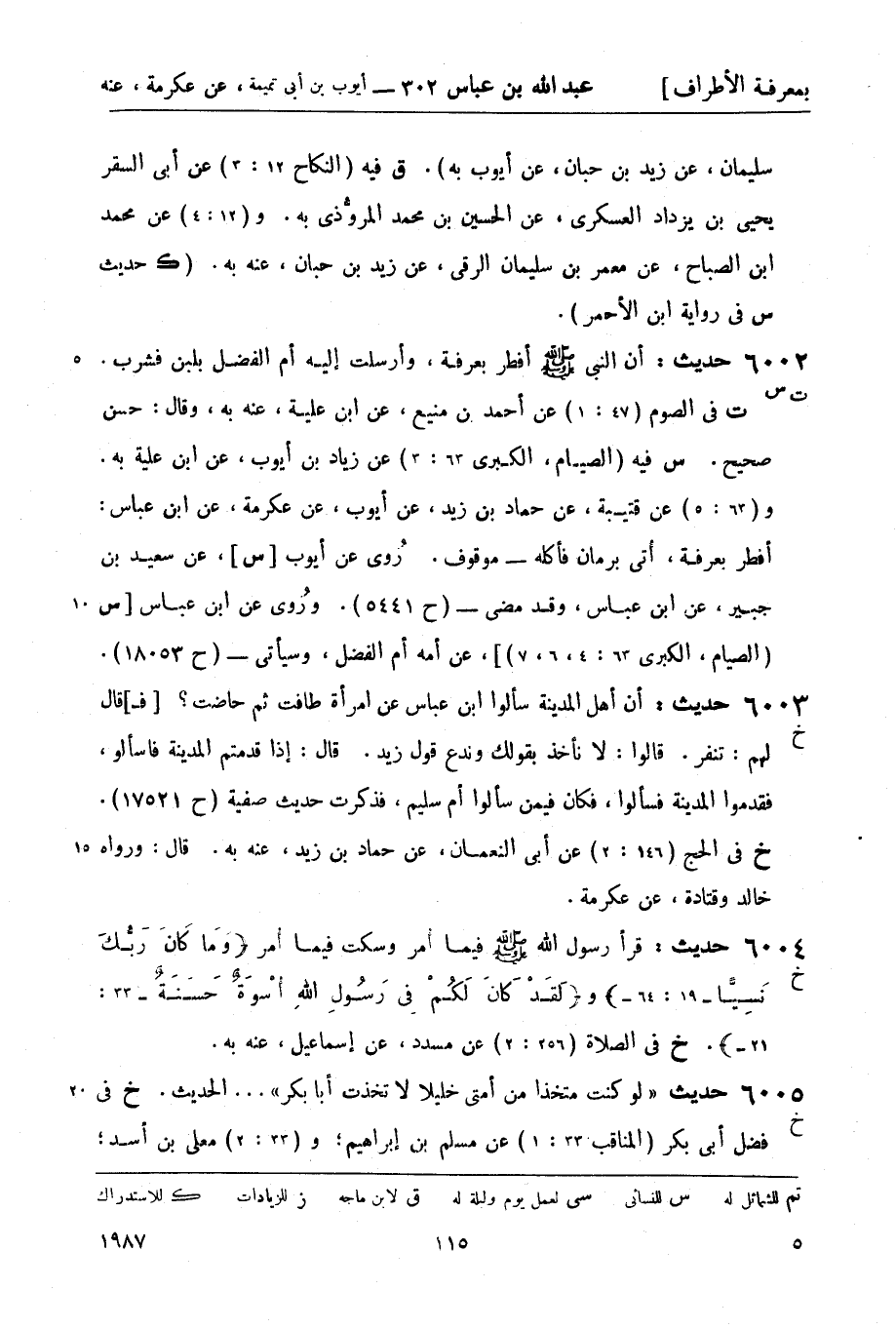 س فيه (الصيام، الكبرى 63: 3) عن زياد بن أيوب، عن ابن علية به. و (63: 5) عن قتيبة، عن حماد بن زيد، عن أيوب، عن عكرمة، عن ابن عباس: أفطر بعرفة، أتى برمان فأكله - موقوف. رُوي عن أيوب [س] عن سعيد بن جبير، عن ابن عباس، وقد مضى - (ح 5441) ورُوي عن ابن عباس [س (الصيام، الكبرى 63: 4، 6، 7) ] عن أمه أم الفضل، وسيأتي - (ح 18053)