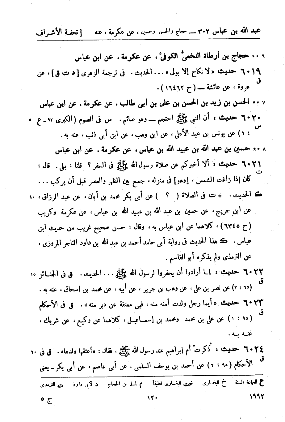 ت في الصلاة (؟) عن أبي بكر محمد بن أبان، عن عبد الرزاق عن ابن جريج، عن حسين بن عبد الله بن عبيد الله بن عباس، عن عكرمة وكريب (ح 6345) كلاهما عن ابن عباس به، وقال: حسن صحيح غريب من حديث ابن عباس. (ك) هذا الحديث في رواية أبي حامد أحمد بن عبد الله بن داود التاجر المروزي، عن الترمذي ولم يذكره أبو القاسم.