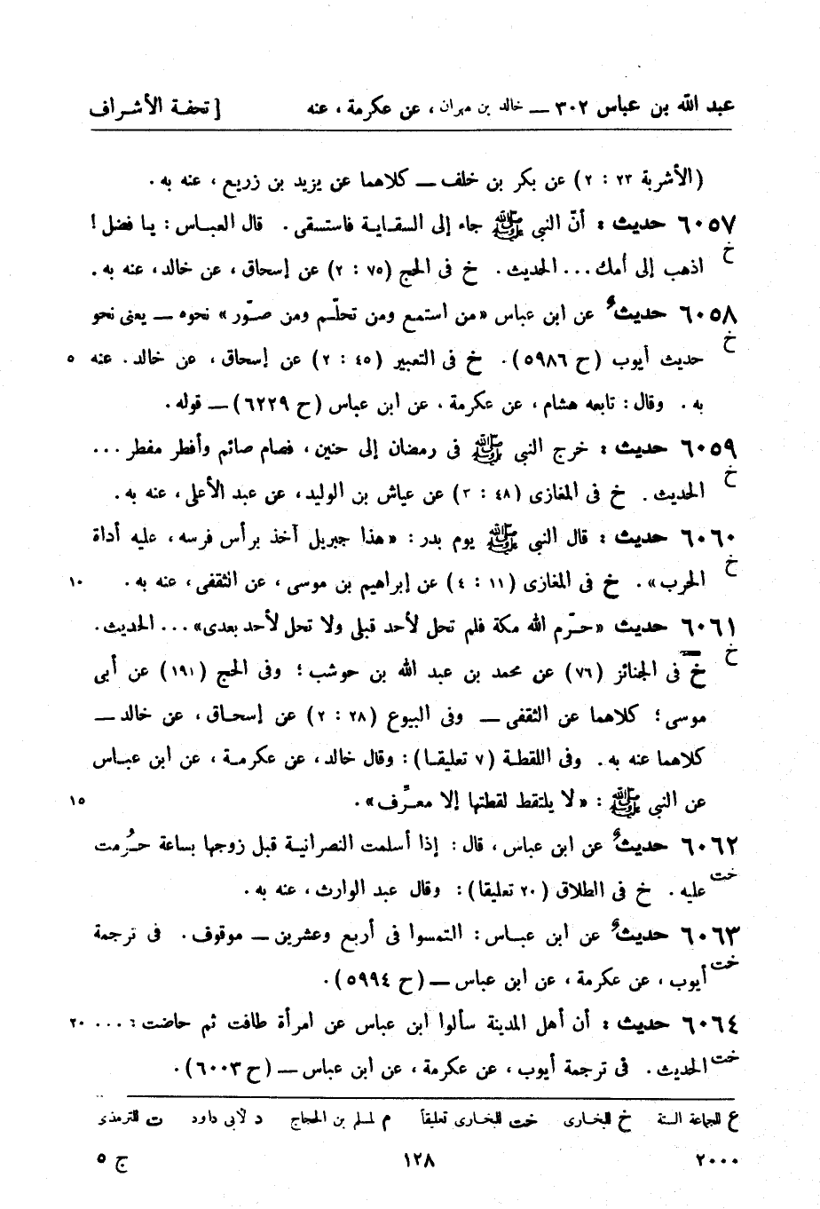 خ في الجنائز (76) عن محمد بن عبد الله بن حوشب، وفي الحج (191) عن أبي موسى، كلاهما عن الثقفي - وفي البيوع (28: 2) عن إسحاق، عن خالد - كلاهما عنه به. وفي اللقطة (7 تعليقاً) وقال خالد، عن عكرمة، عن ابن عباس عن النبيّ صَلَّى اللَّهُ عَلَيْهِ وَسَلَّمَ لا يلتقط لقطتها إلا معرِّف.