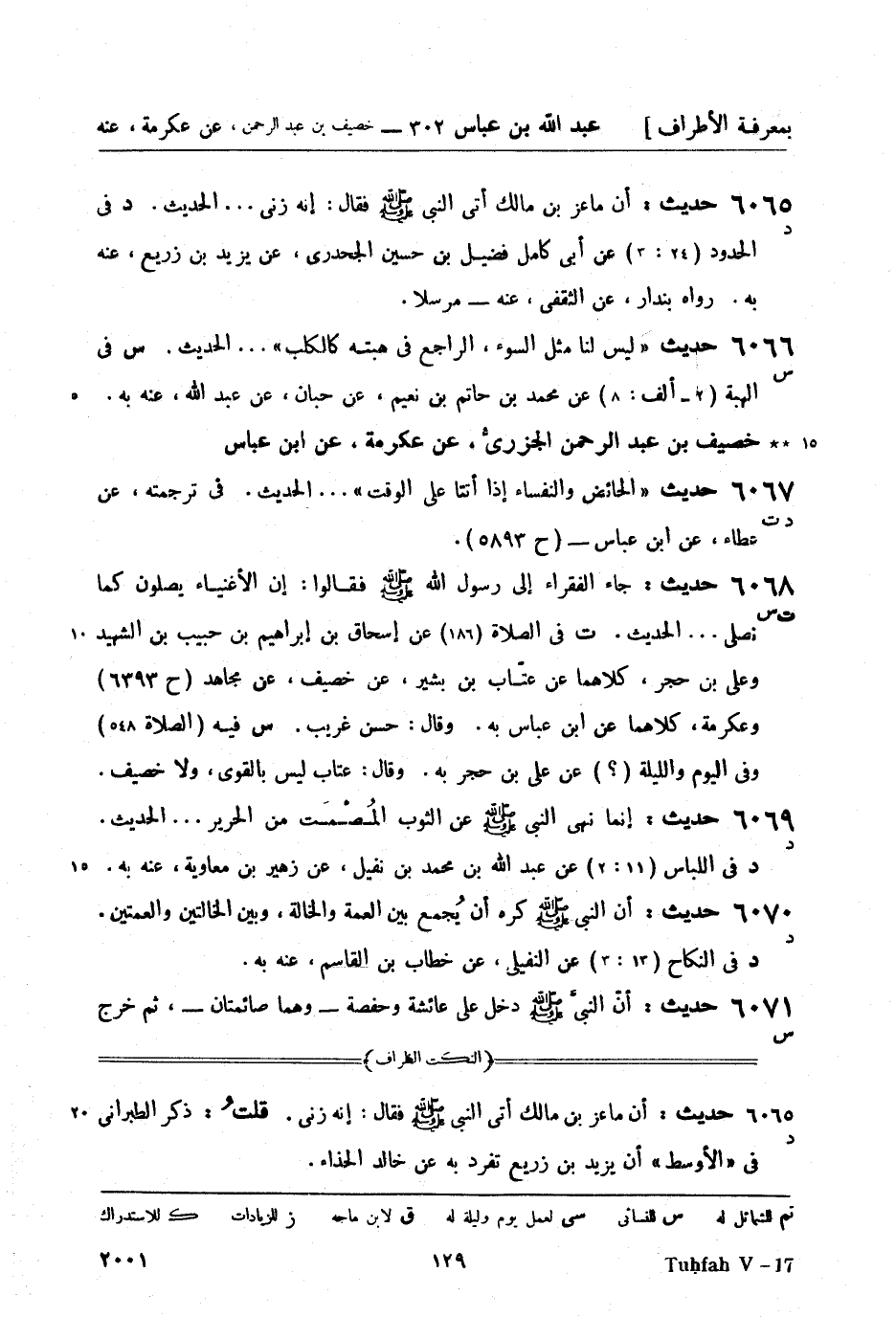 س فيه (الصلاة 548) وفي اليوم والليلة (؟) عن علي بن حجر به. وقال: عتاب ليس بالقوي، ولا خصيف.