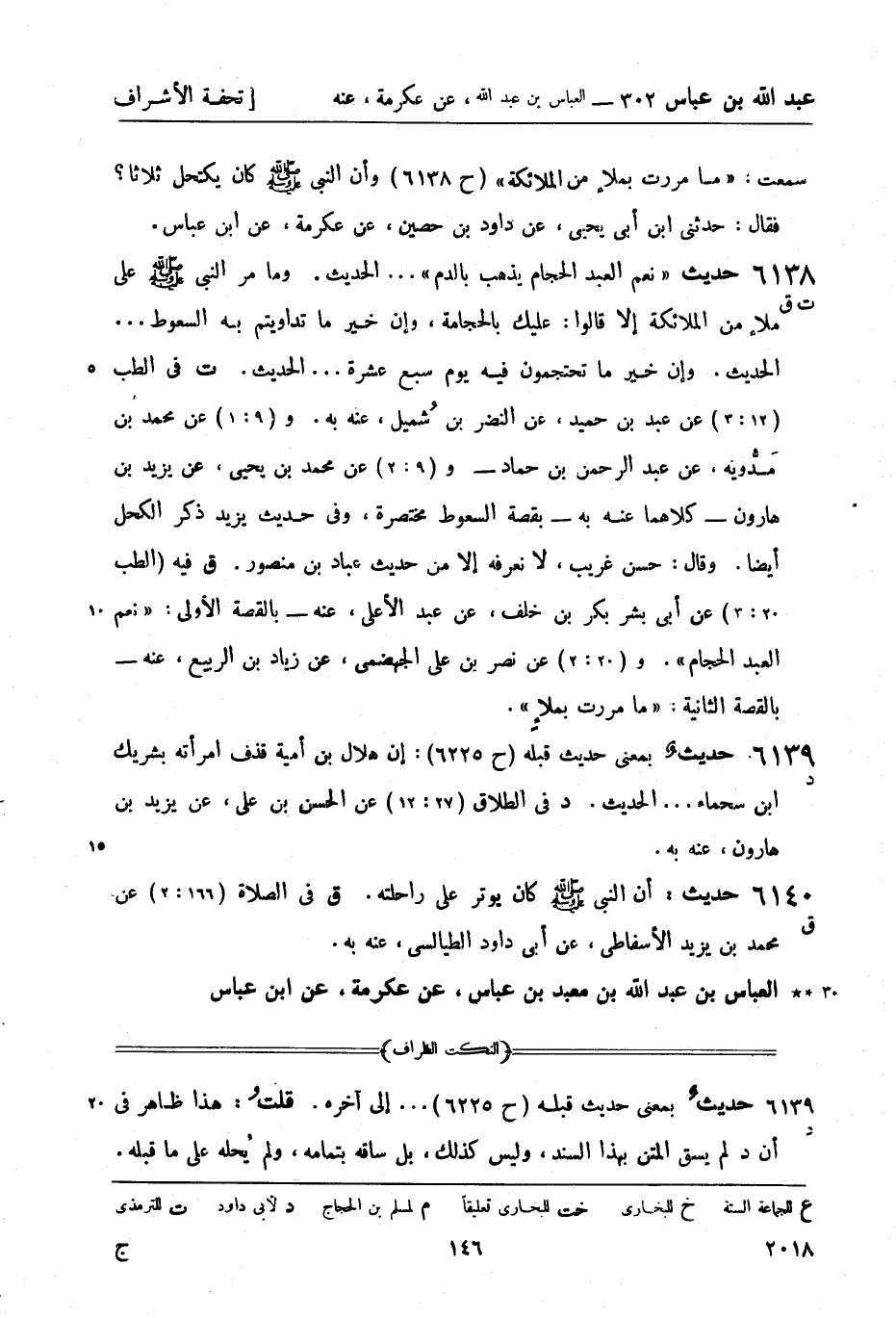 6138 -[ت ق] حديث نعم العبد الحجام يذهب بالدم ... الحديث. وما مر النبي صَلَّى اللَّهُ عَلَيْهِ وَسَلَّمَ على ملأ من الملائكة إلا قالوا: عليك بالحجامة، وإن خير ما تداويتم به السعوط ... الحديث. وإن خير ما تحتجمون فيه يوم سبع عشرة ... الحديث.