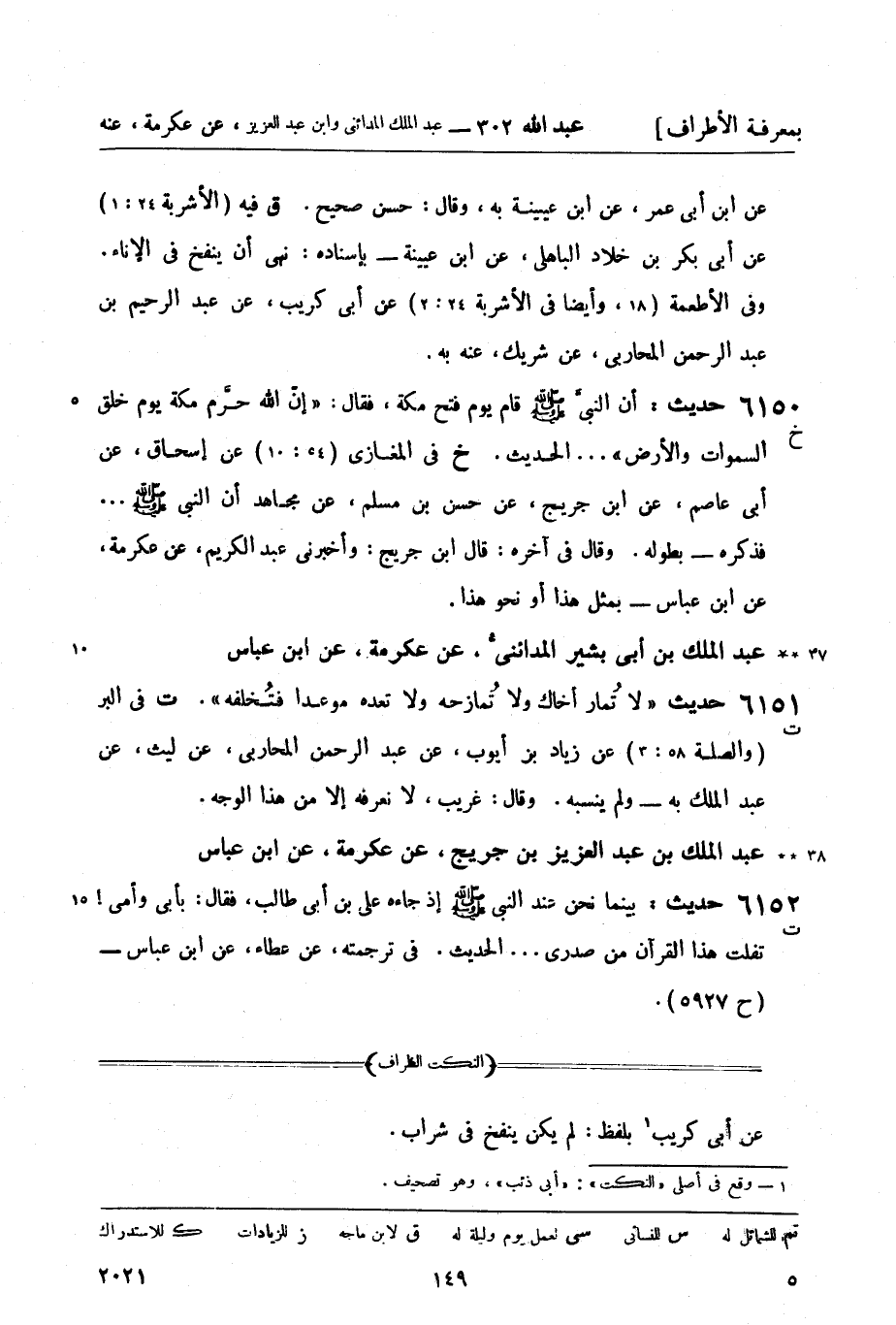 6150 -[خ] حديث: أن النبيَّ صَلَّى اللَّهُ عَلَيْهِ وَسَلَّمَ قام يوم فتح مكة، فقال: إنّ الله حرَّم مكة يوم خلق السماوات والأرض ... الحديث.