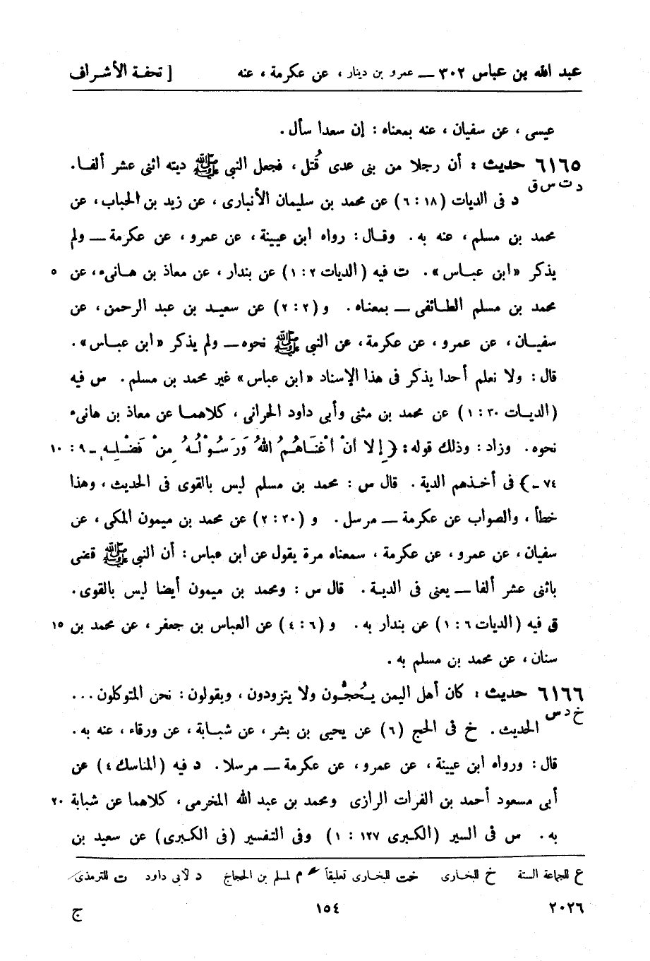6165 -[د ت س ق] حديث: أن رجلاً من بني عدي قُتل، فجعل النبي صَلَّى اللَّهُ عَلَيْهِ وَسَلَّمَ ديته اثني عشر ألفاً. (د) في الديات (18: 6) عن محمد بن سليمان الأنباري، عن زيد بن الحباب، عن محمد بن مسلم، عنه به. وقال: رواه ابن عيينة، عن عمرو، عن عكرمة - ولم يذكر ابن عباس