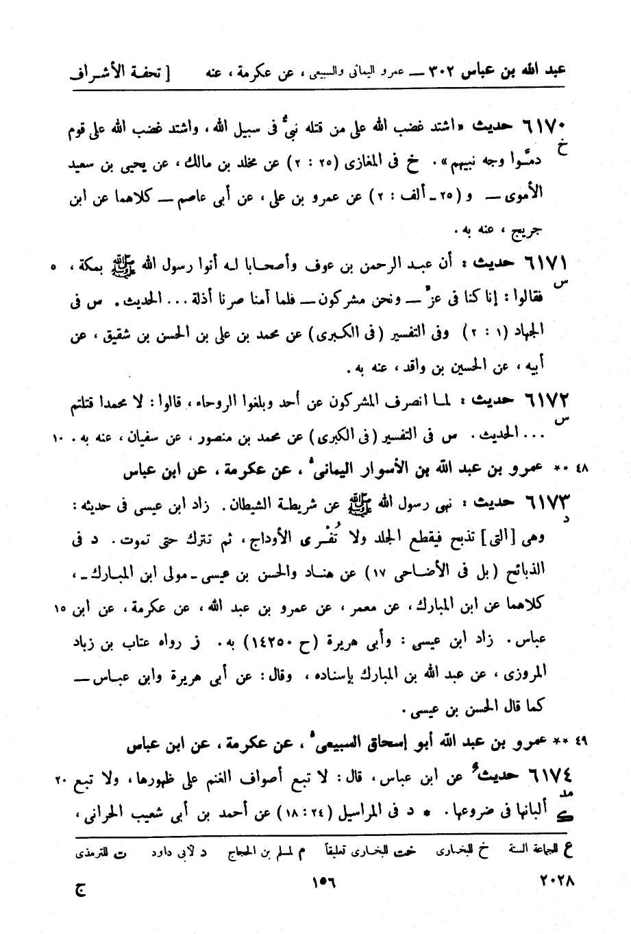 6170 -[خ] حديث اشتد غضب الله على من قتله نبيٌّ في سبيل الله، واشتد غضب الله على قوم دمَّوا وجه نبيهم (خ) في المغازي (25: 2) عن مخلد بن مالك، عن يحيى بن سعيد الأموي - و (25 - ألف: 2) عن عمرو بن علي، عن أبي عاصم - كلاهما عن ابن جريج، عنه به.