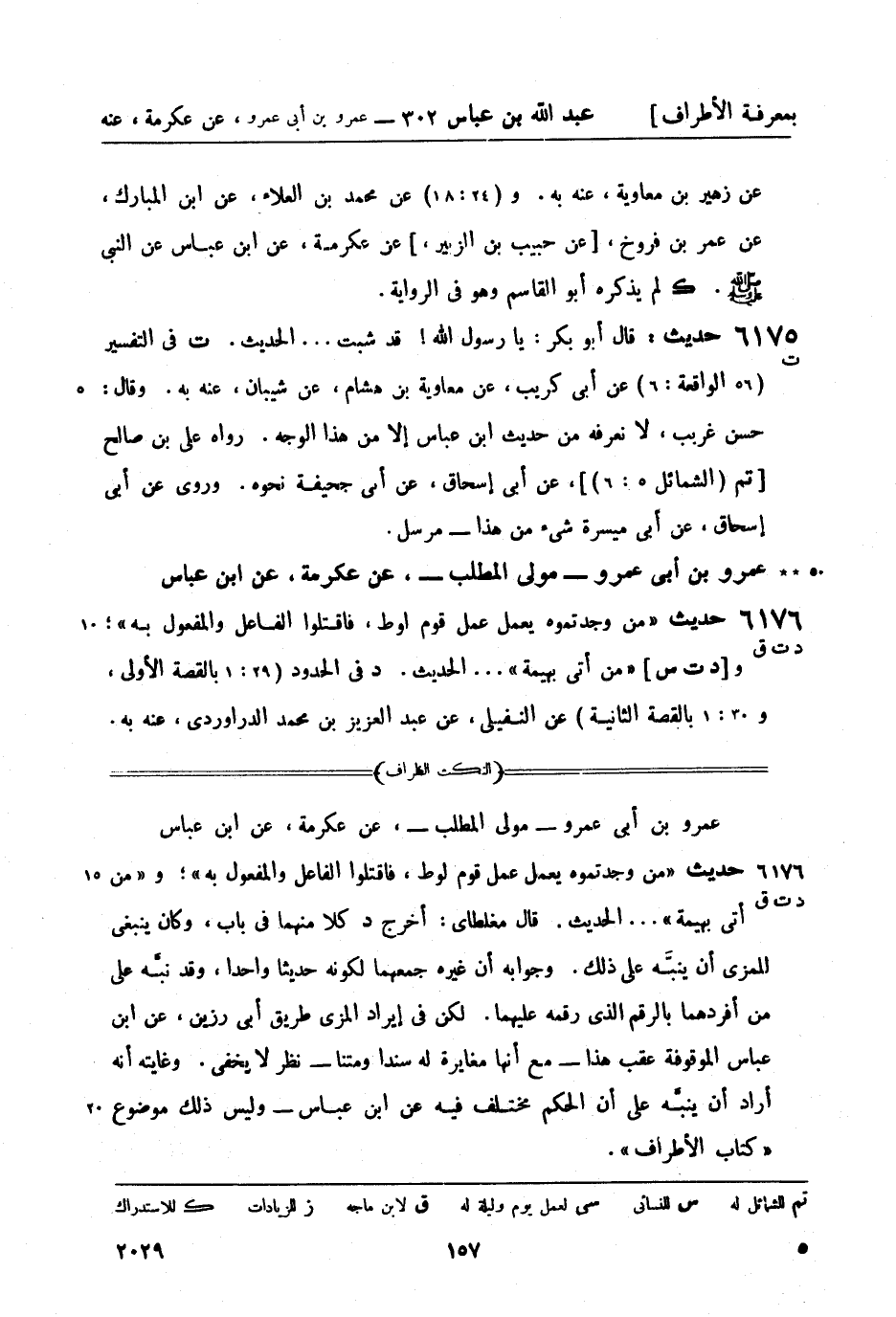 ت فيه (الحدود 24: 1 بالقصة الأولى، و23: 1 بالقصة الثانية) عن محمد بن عمرو السواق، عن عبد العزيز به. وقال: لا نعرفه إلا من حديث عمرو، عن عكرمة. وقد روى سفيان، عن عاصم، عن أبي رزين، عن ابن عباس أنه قال: من أتى بهيمة فلا شيء عليه - حدثنا بذلك ابن بشار، عن ابن مهدي، عن الثوري - وهذا أصح. وروى ابن إسحاق هذا الحديث عن عمرو بن أبي عمرو، فقال: ملعون من عمل عمل قوم لوط - ولم يذكر القتل